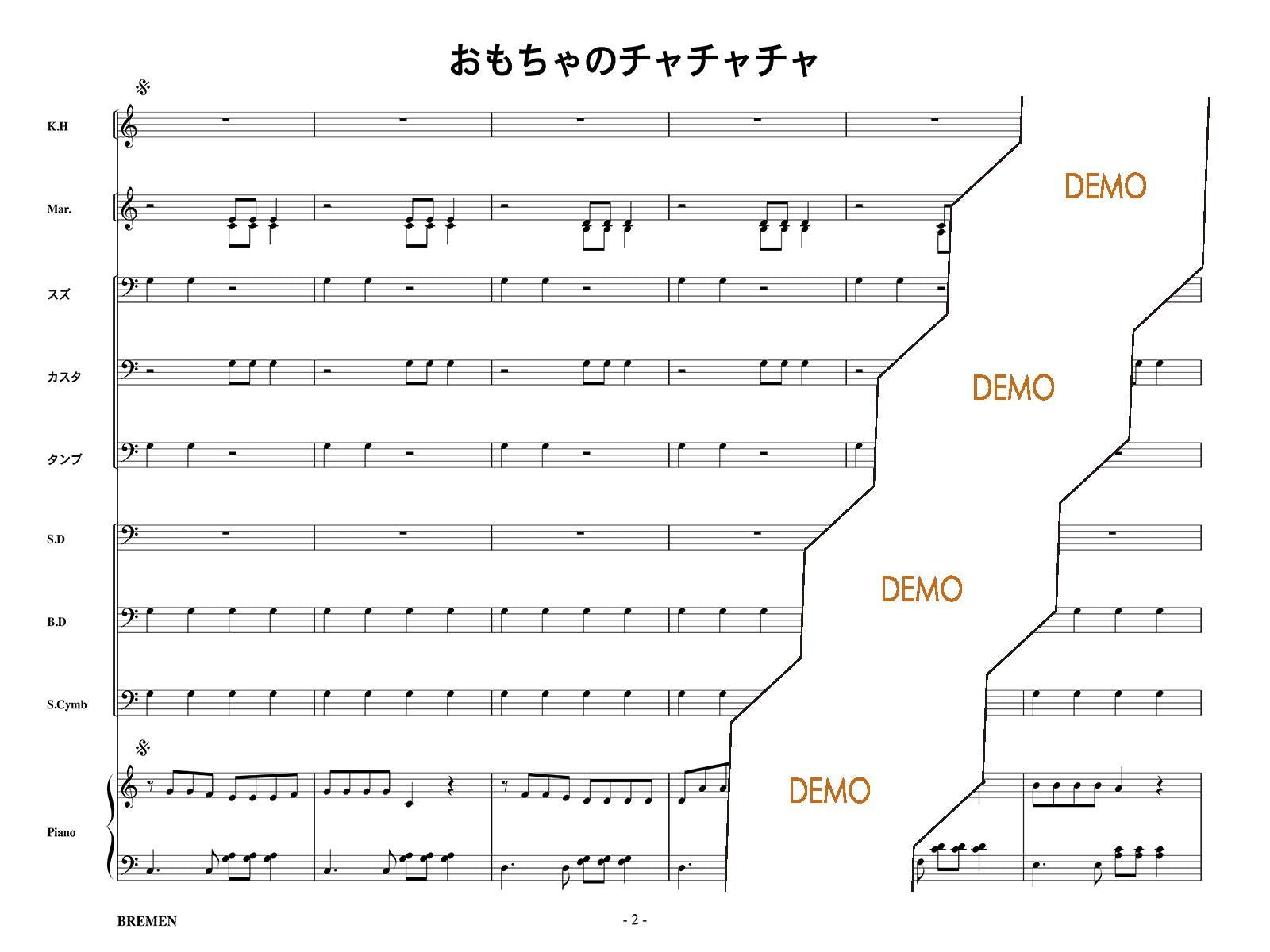 ピアノ伴奏にあわせて演奏するリズム楽器の合奏譜です♪