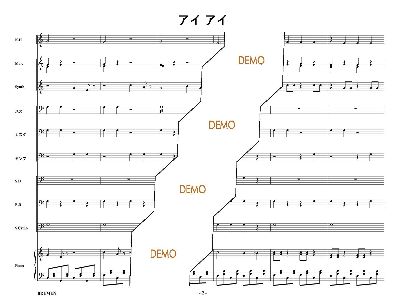主な使用楽器:鍵盤ハーモニカ、グロッケン、ビブラフォン、マリンバ、スズ、カスタネット、タンバリン、スネアドラム(小太鼓)、バスドラム(大太鼓)、スタンドシンバル、ピアノ