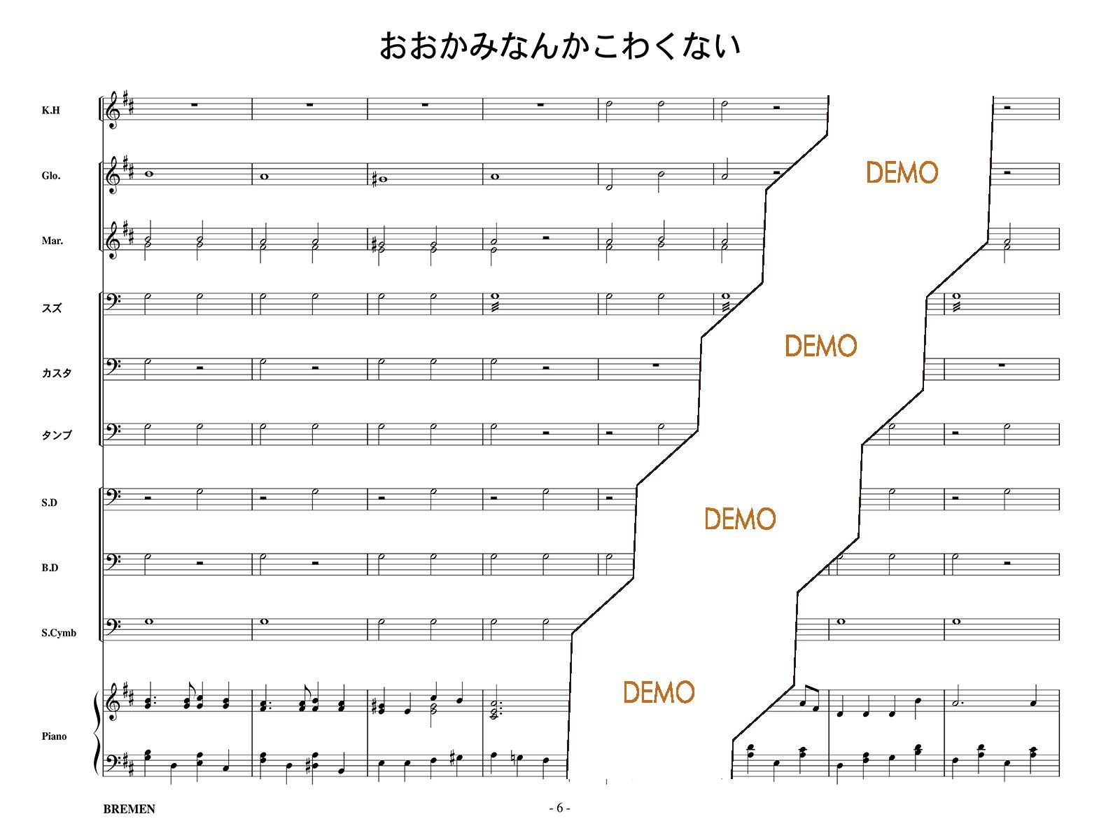 主な使用楽器:鍵盤ハーモニカ、グロッケン、ビブラフォン、マリンバ、スズ、カスタネット、タンバリン、スネアドラム(小太鼓)、バスドラム(大太鼓)、スタンドシンバル、ピアノ
