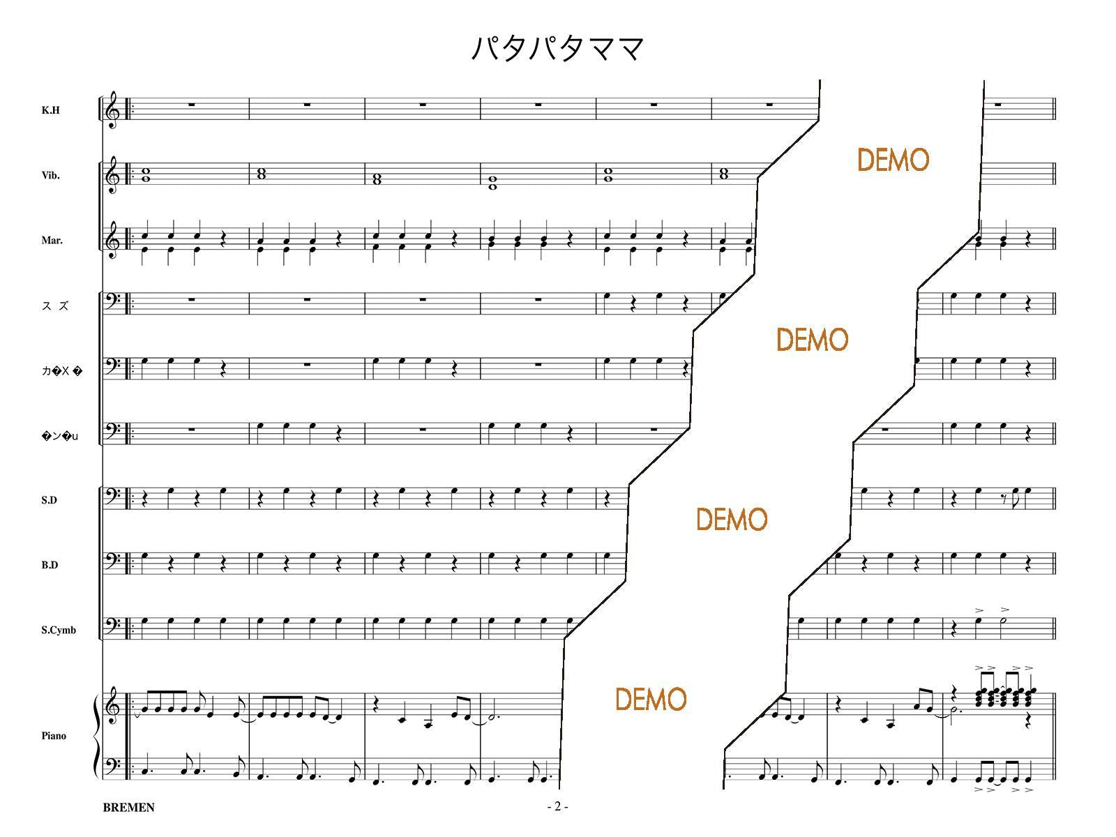 主な使用楽器:鍵盤ハーモニカ、グロッケン、ビブラフォン、マリンバ、スズ、カスタネット、タンバリン、スネアドラム(小太鼓)、バスドラム(大太鼓)、スタンドシンバル、ピアノ