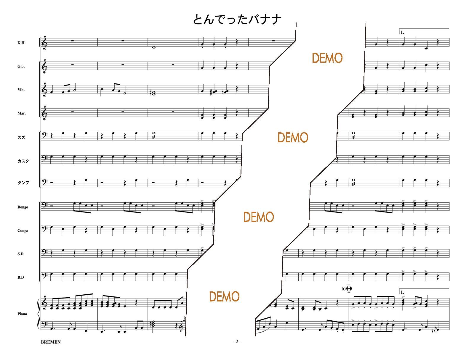主な使用楽器:鍵盤ハーモニカ、グロッケン、ビブラフォン、マリンバ、スズ、カスタネット、タンバリン、スネアドラム(小太鼓)、バスドラム(大太鼓)、スタンドシンバル、ピアノ