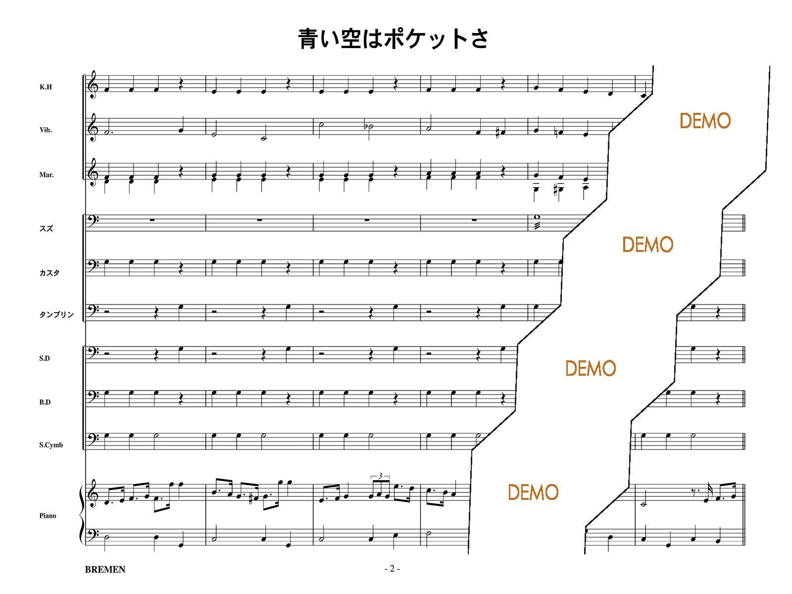 主な使用楽器:鍵盤ハーモニカ、グロッケン、ビブラフォン、マリンバ、スズ、カスタネット、タンバリン、スネアドラム(小太鼓)、バスドラム(大太鼓)、スタンドシンバル、ピアノ