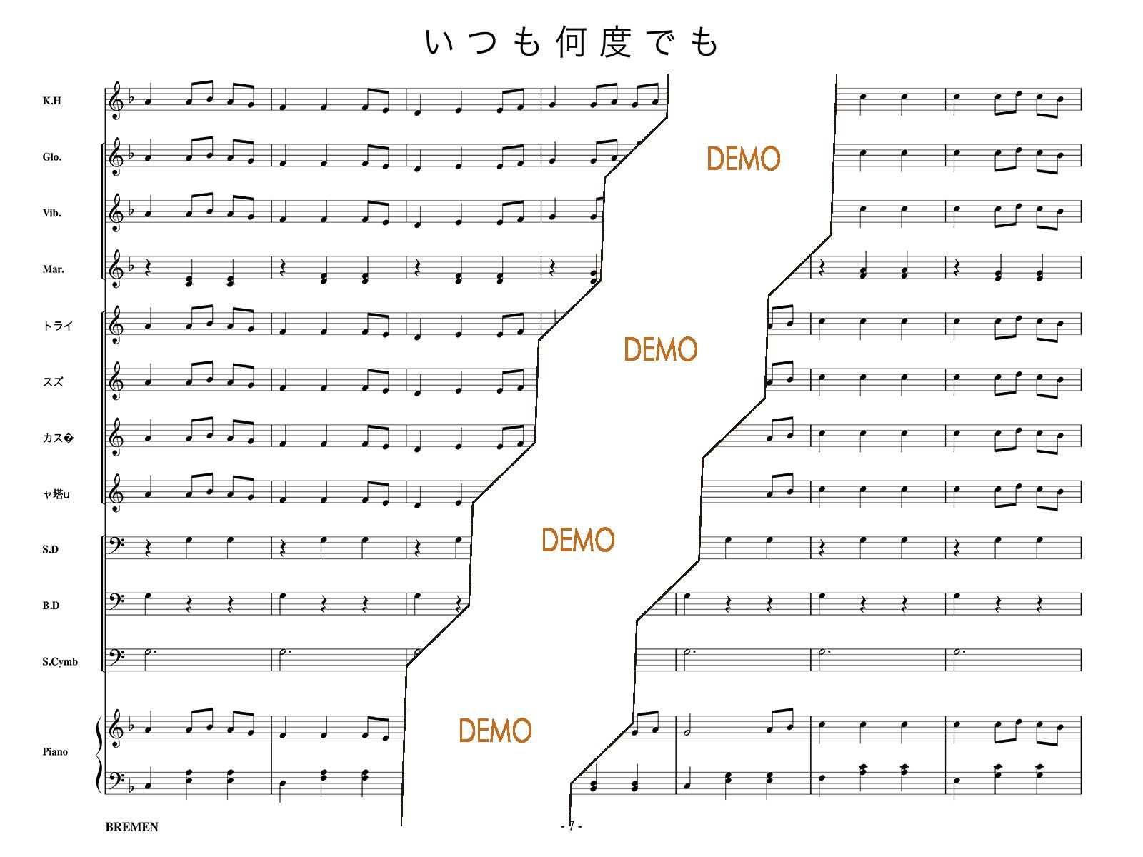主な使用楽器:鍵盤ハーモニカ、グロッケン、ビブラフォン、マリンバ、スズ、カスタネット、タンバリン、スネアドラム(小太鼓)、バスドラム(大太鼓)、スタンドシンバル、ピアノ
