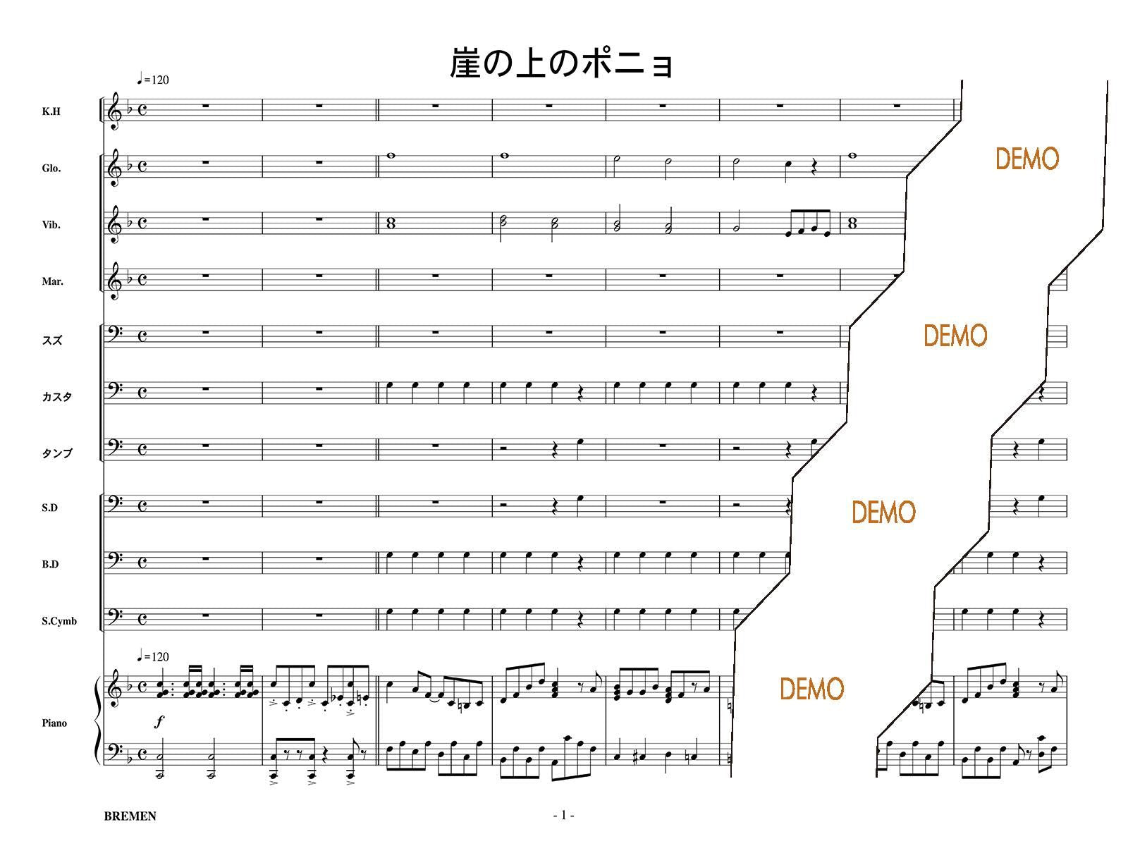 主な使用楽器:鍵盤ハーモニカ、グロッケン、ビブラフォン、マリンバ、スズ、カスタネット、タンバリン、スネアドラム(小太鼓)、バスドラム(大太鼓)、スタンドシンバル、ピアノ