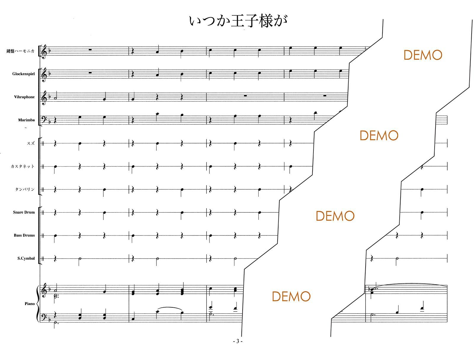 主な使用楽器:鍵盤ハーモニカ、グロッケン、ビブラフォン、マリンバ、スズ、カスタネット、タンバリン、スネアドラム(小太鼓)、バスドラム(大太鼓)、スタンドシンバル、ピアノ