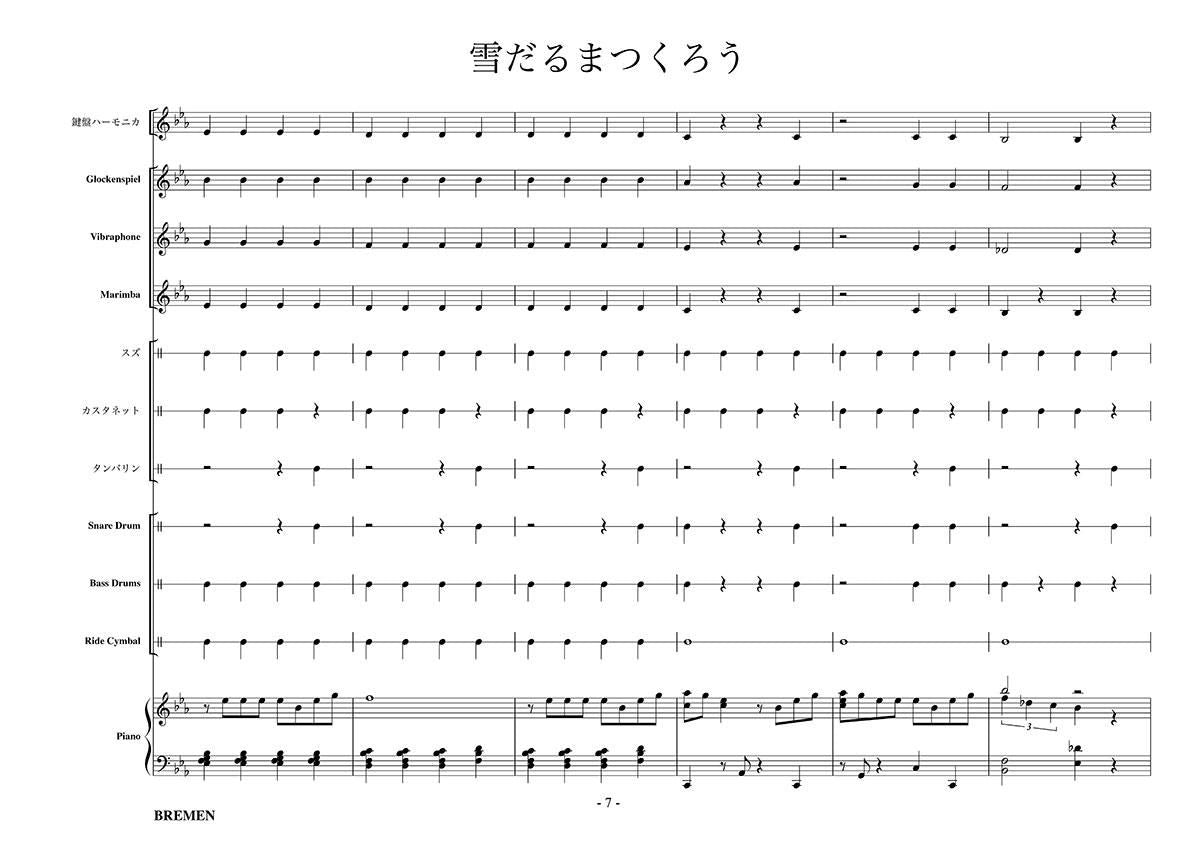 主な使用楽器:鍵盤ハーモニカ、グロッケン、ビブラフォン、マリンバ、スズ、カスタネット、タンバリン、スネアドラム(小太鼓)、バスドラム(大太鼓)、スタンドシンバル、ピアノ