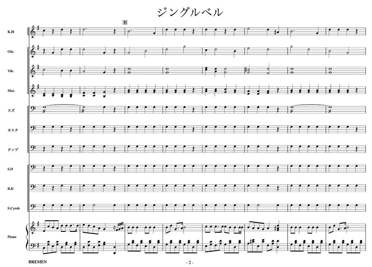 主な使用楽器:鍵盤ハーモニカ、グロッケン、ビブラフォン、マリンバ、スズ、カスタネット、タンバリン、スネアドラム(小太鼓)、バスドラム(大太鼓)、スタンドシンバル、ピアノ