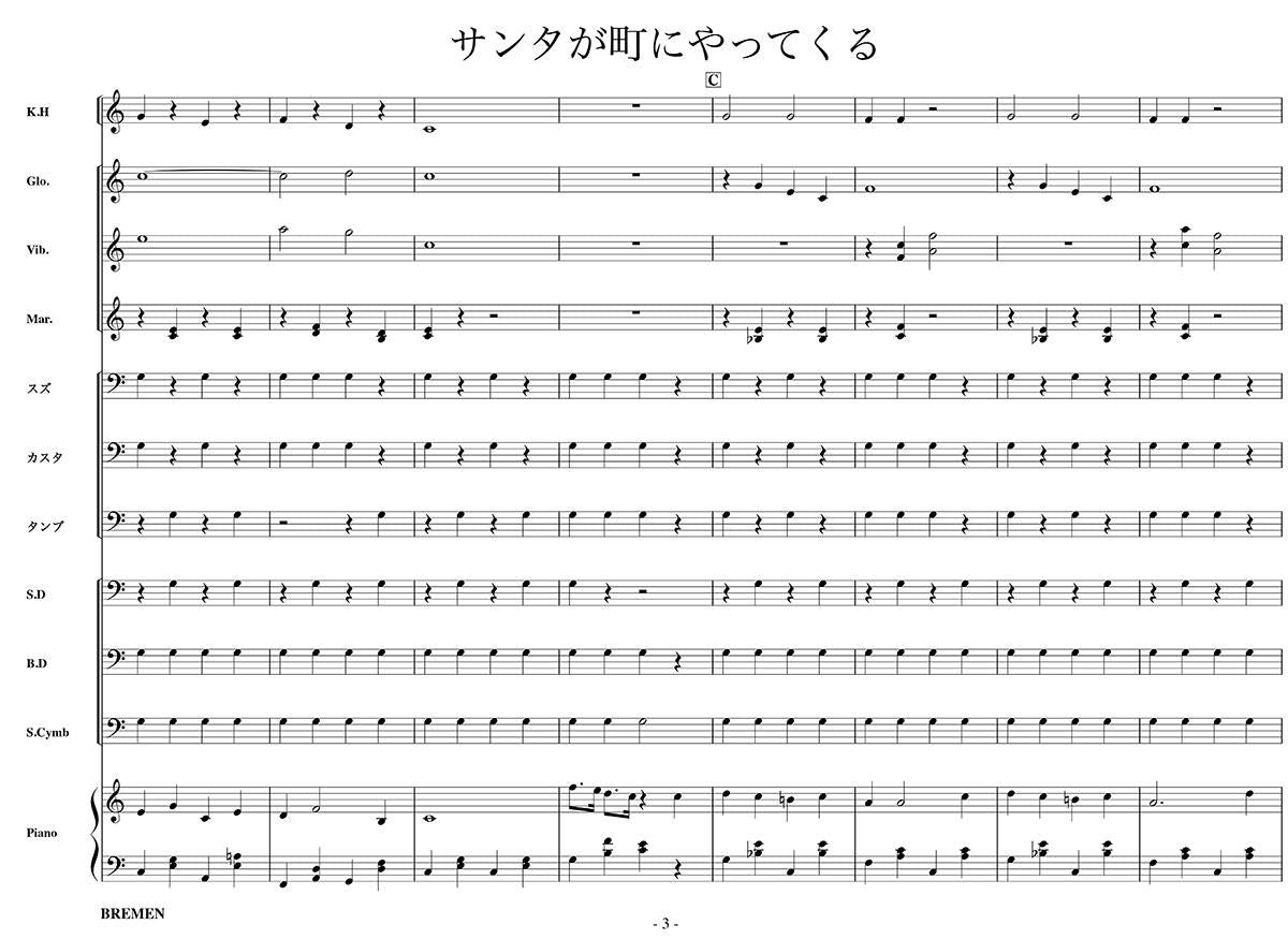 主な使用楽器:鍵盤ハーモニカ、グロッケン、ビブラフォン、マリンバ、スズ、カスタネット、タンバリン、スネアドラム(小太鼓)、バスドラム(大太鼓)、スタンドシンバル、ピアノ