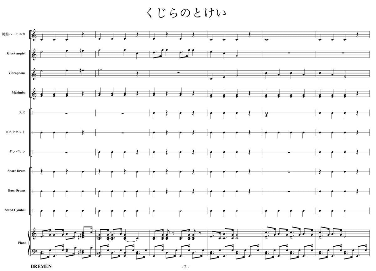 主な使用楽器:鍵盤ハーモニカ、グロッケン、ビブラフォン、マリンバ、スズ、カスタネット、タンバリン、スネアドラム(小太鼓)、バスドラム(大太鼓)、スタンドシンバル、ピアノ