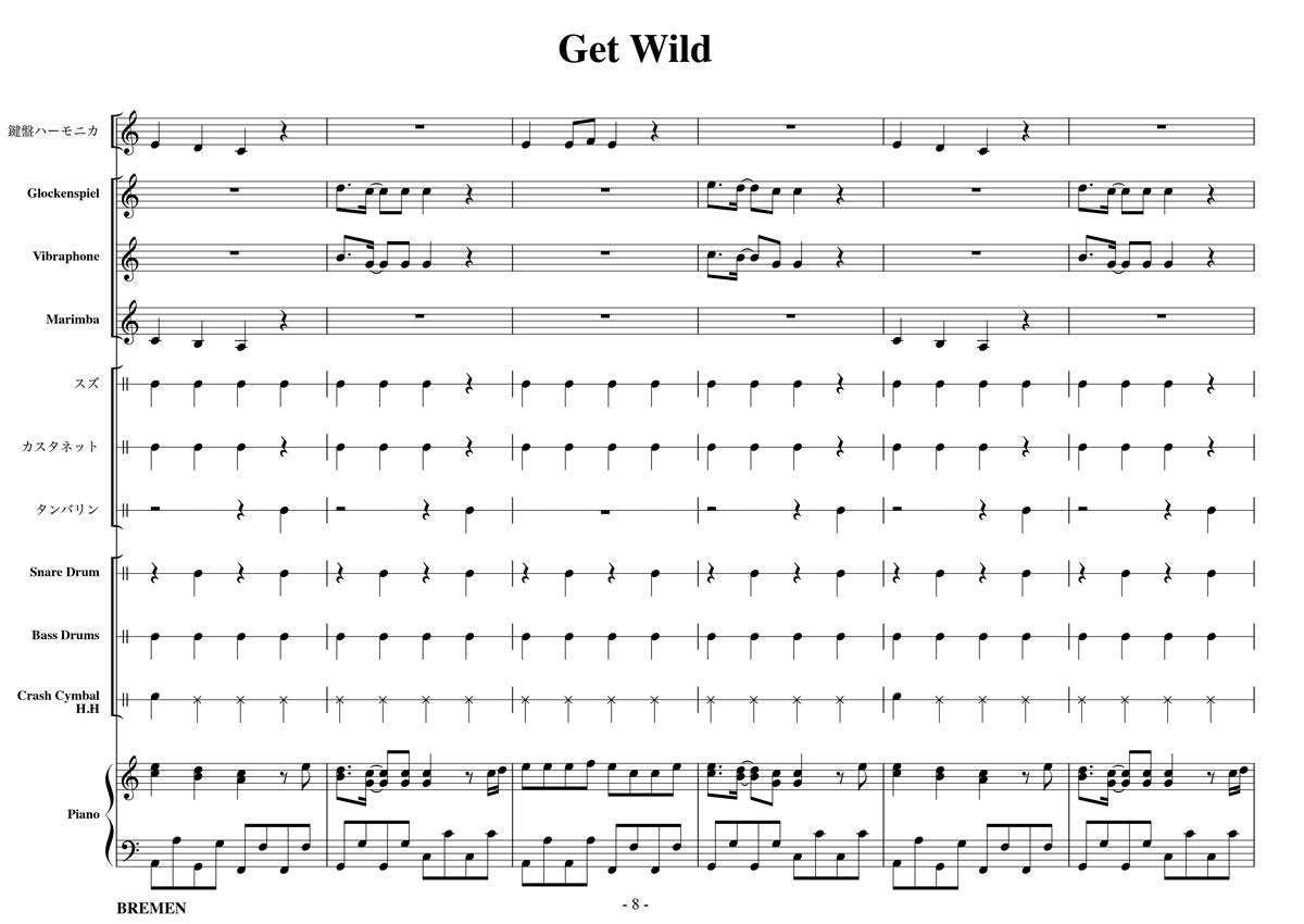 主な使用楽器:鍵盤ハーモニカ、グロッケン、ビブラフォン、マリンバ、スズ、カスタネット、タンバリン、スネアドラム(小太鼓)、バスドラム(大太鼓)、スタンドシンバル、ピアノ