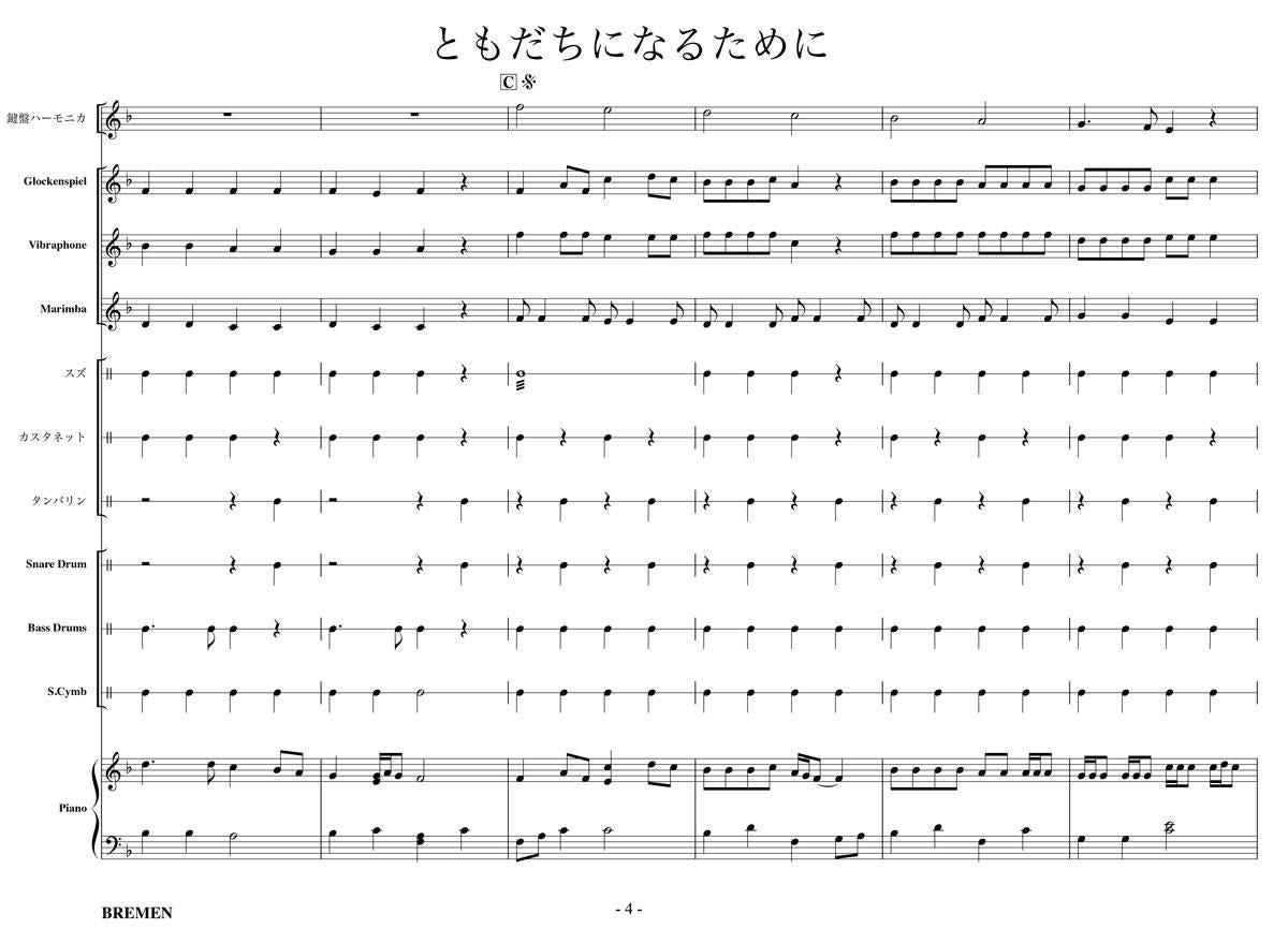 主な使用楽器:鍵盤ハーモニカ、グロッケン、ビブラフォン、マリンバ、スズ、カスタネット、タンバリン、スネアドラム(小太鼓)、バスドラム(大太鼓)、スタンドシンバル、ピアノ