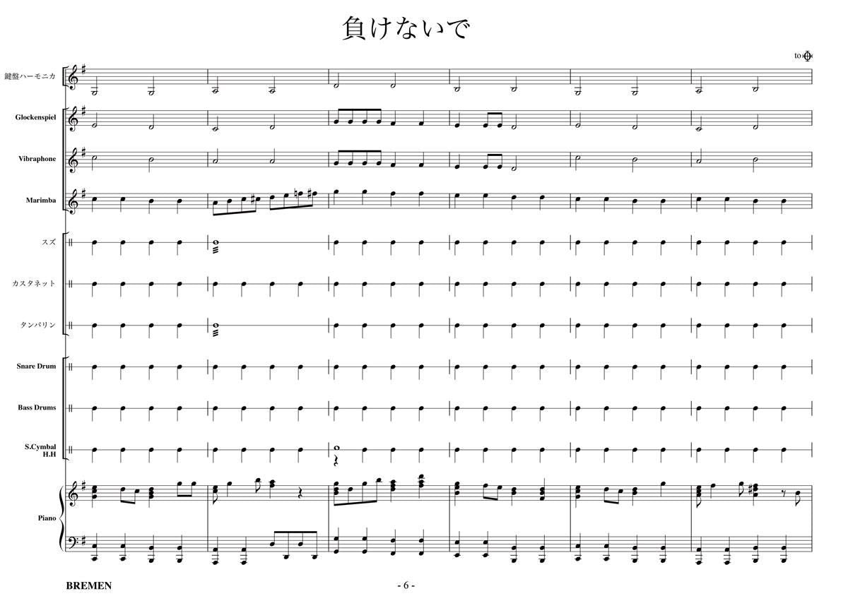 主な使用楽器:鍵盤ハーモニカ、グロッケン、ビブラフォン、マリンバ、スズ、カスタネット、タンバリン、スネアドラム(小太鼓)、バスドラム(大太鼓)、スタンドシンバル、ピアノ