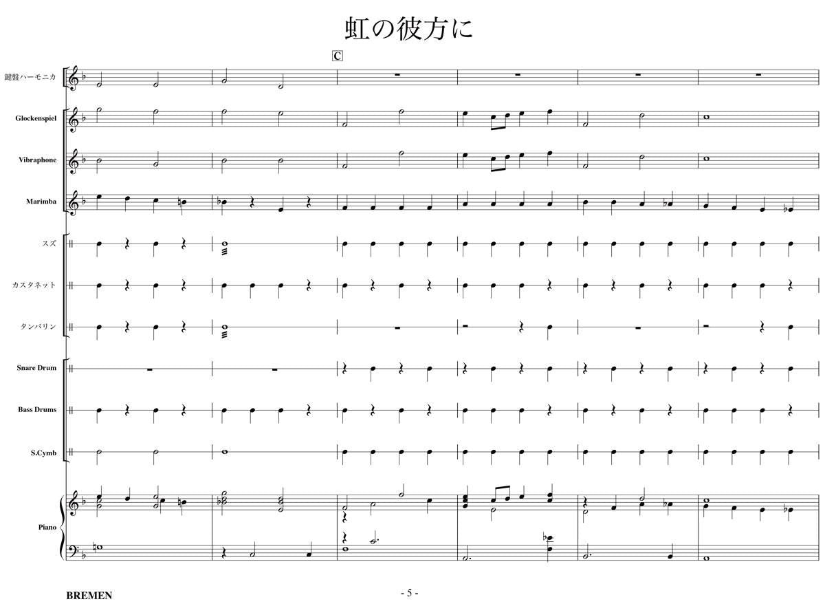 主な使用楽器:鍵盤ハーモニカ、グロッケン、ビブラフォン、マリンバ、スズ、カスタネット、タンバリン、スネアドラム(小太鼓)、バスドラム(大太鼓)、スタンドシンバル、ピアノ