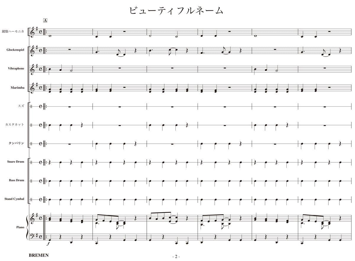 主な使用楽器:鍵盤ハーモニカ、グロッケン、ビブラフォン、マリンバ、スズ、カスタネット、タンバリン、スネアドラム(小太鼓)、バスドラム(大太鼓)、スタンドシンバル、ピアノ