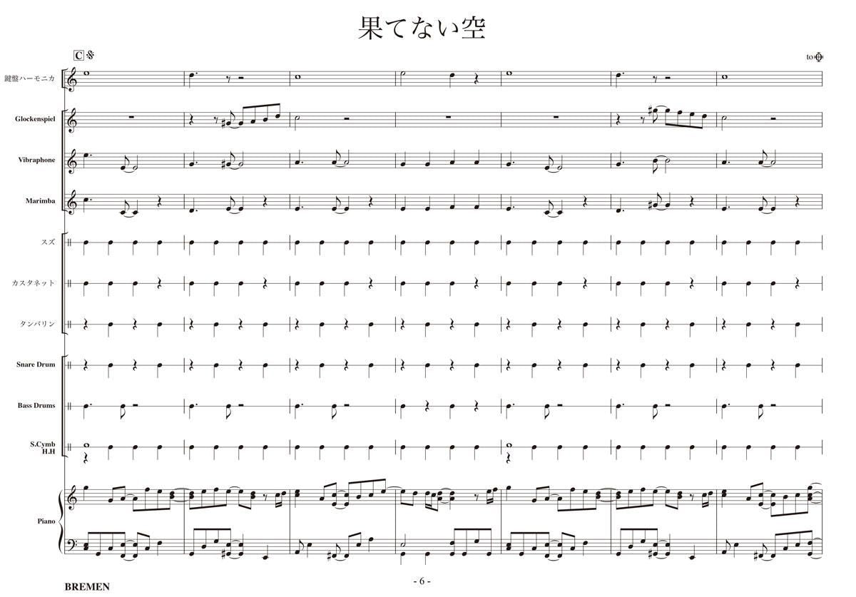 主な使用楽器:鍵盤ハーモニカ、グロッケン、ビブラフォン、マリンバ、スズ、カスタネット、タンバリン、スネアドラム(小太鼓)、バスドラム(大太鼓)、スタンドシンバル、ピアノ
