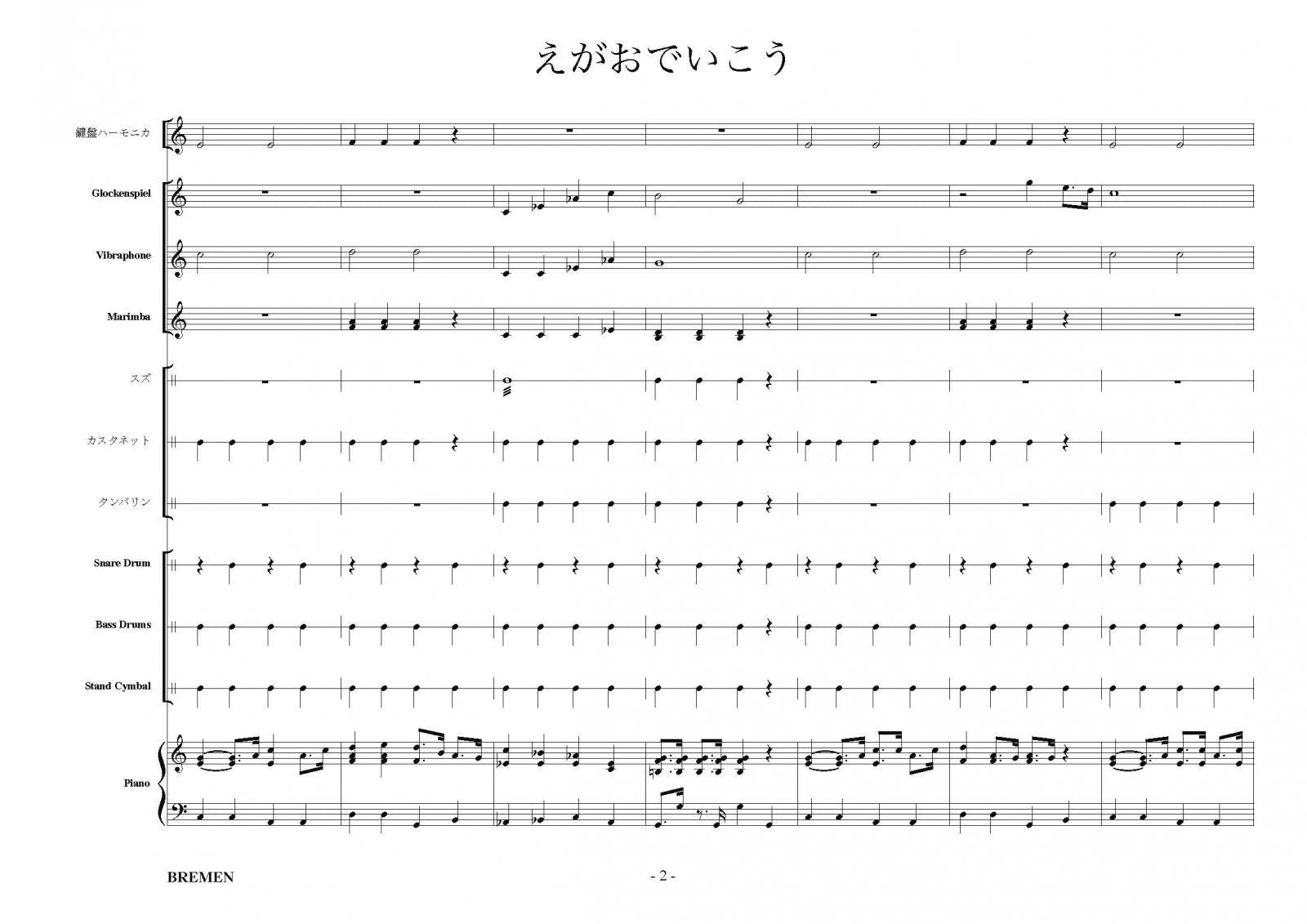 主な使用楽器:鍵盤ハーモニカ、グロッケン、ビブラフォン、マリンバ、スズ、カスタネット、タンバリン、スネアドラム(小太鼓)、バスドラム(大太鼓)、スタンドシンバル、ピアノ