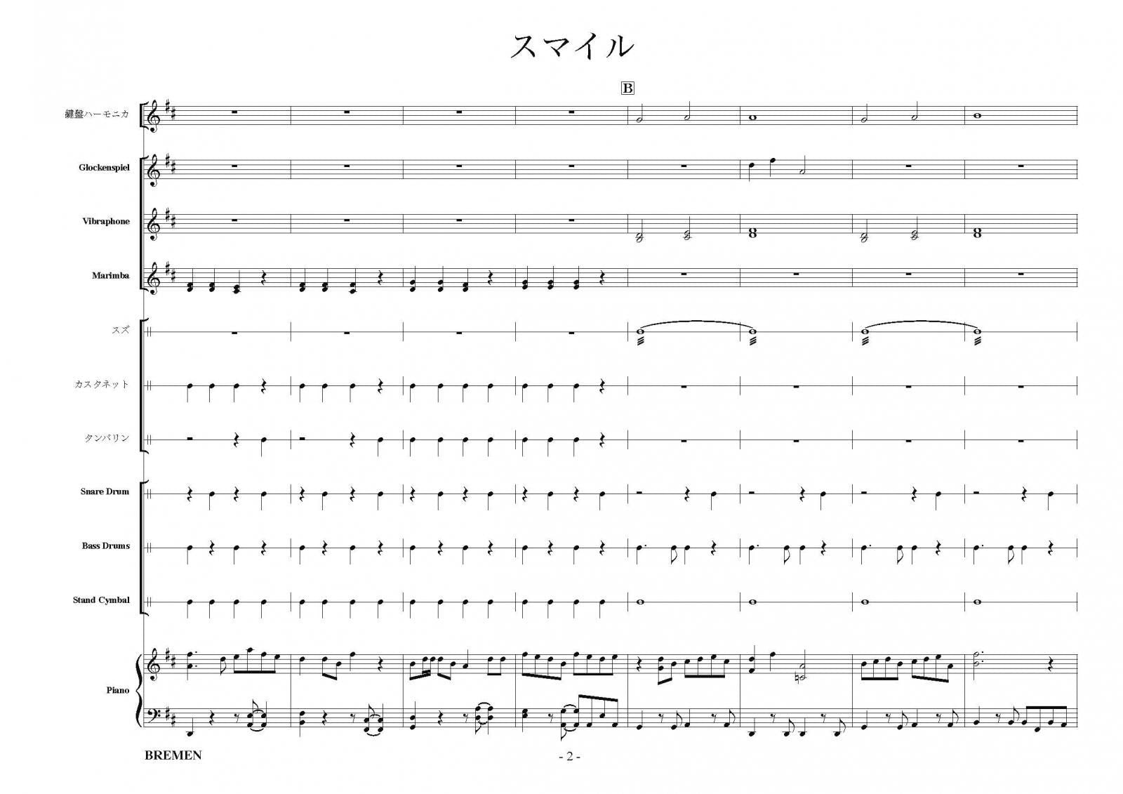 主な使用楽器:鍵盤ハーモニカ、グロッケン、ビブラフォン、マリンバ、スズ、カスタネット、タンバリン、スネアドラム(小太鼓)、バスドラム(大太鼓)、スタンドシンバル、ピアノ