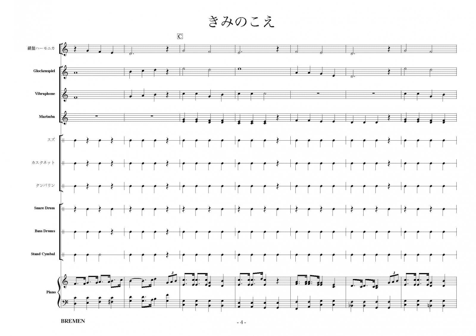 主な使用楽器:鍵盤ハーモニカ、グロッケン、ビブラフォン、マリンバ、スズ、カスタネット、タンバリン、スネアドラム(小太鼓)、バスドラム(大太鼓)、スタンドシンバル、ピアノ