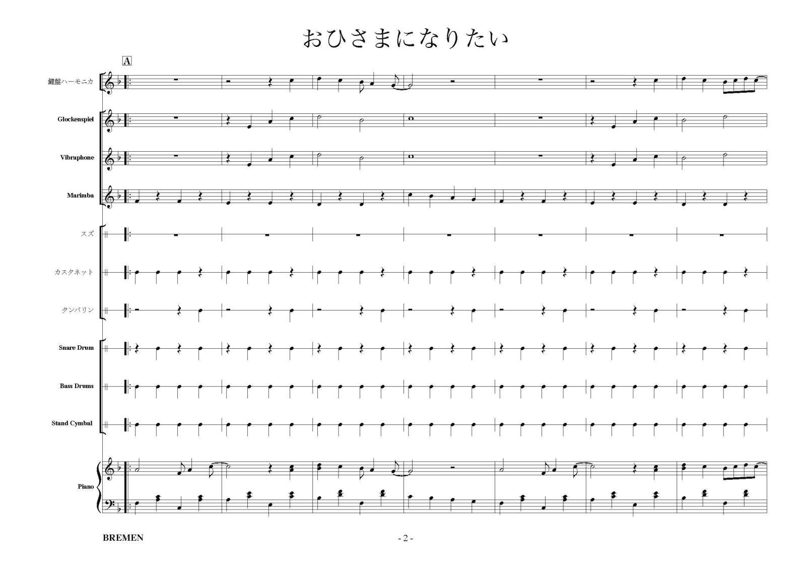 主な使用楽器:鍵盤ハーモニカ、グロッケン、ビブラフォン、マリンバ、スズ、カスタネット、タンバリン、スネアドラム(小太鼓)、バスドラム(大太鼓)、スタンドシンバル、ピアノ