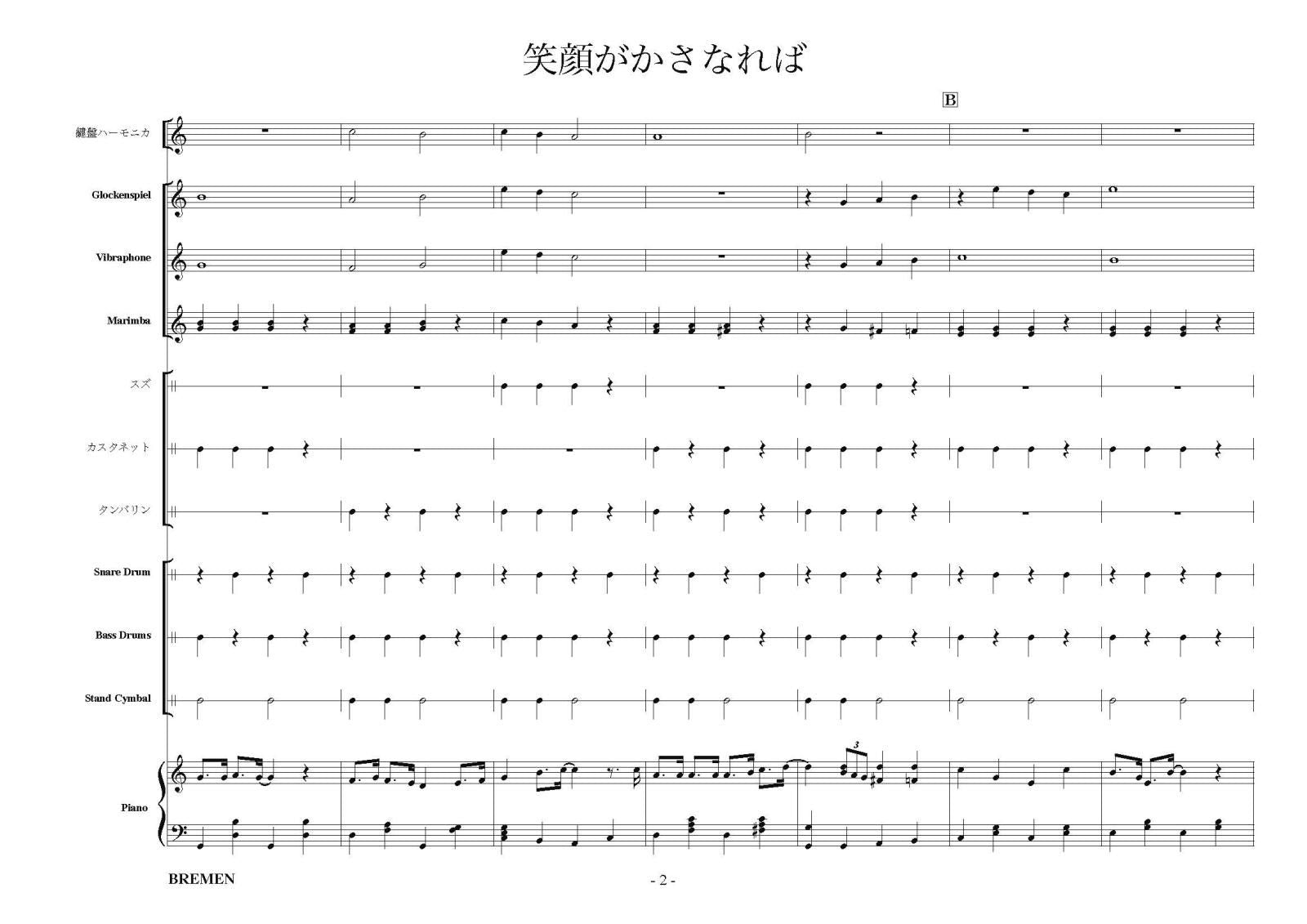 主な使用楽器:鍵盤ハーモニカ、グロッケン、ビブラフォン、マリンバ、スズ、カスタネット、タンバリン、スネアドラム(小太鼓)、バスドラム(大太鼓)、スタンドシンバル、ピアノ