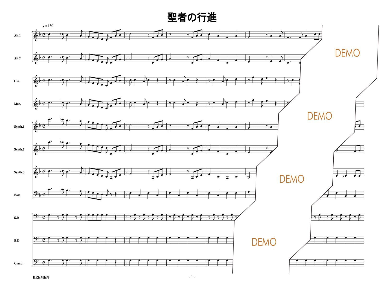 主な使用楽器:鍵盤ハーモニカ、グロッケン(鉄琴)、ビブラフォーン(鉄琴)、マリンバ(木琴)、シンセサイザー(電子オルガン)、ベース(低音楽器)、スネアドラム(小太鼓)、バスドラム(大太鼓)、パーカッション、ティンパニー等