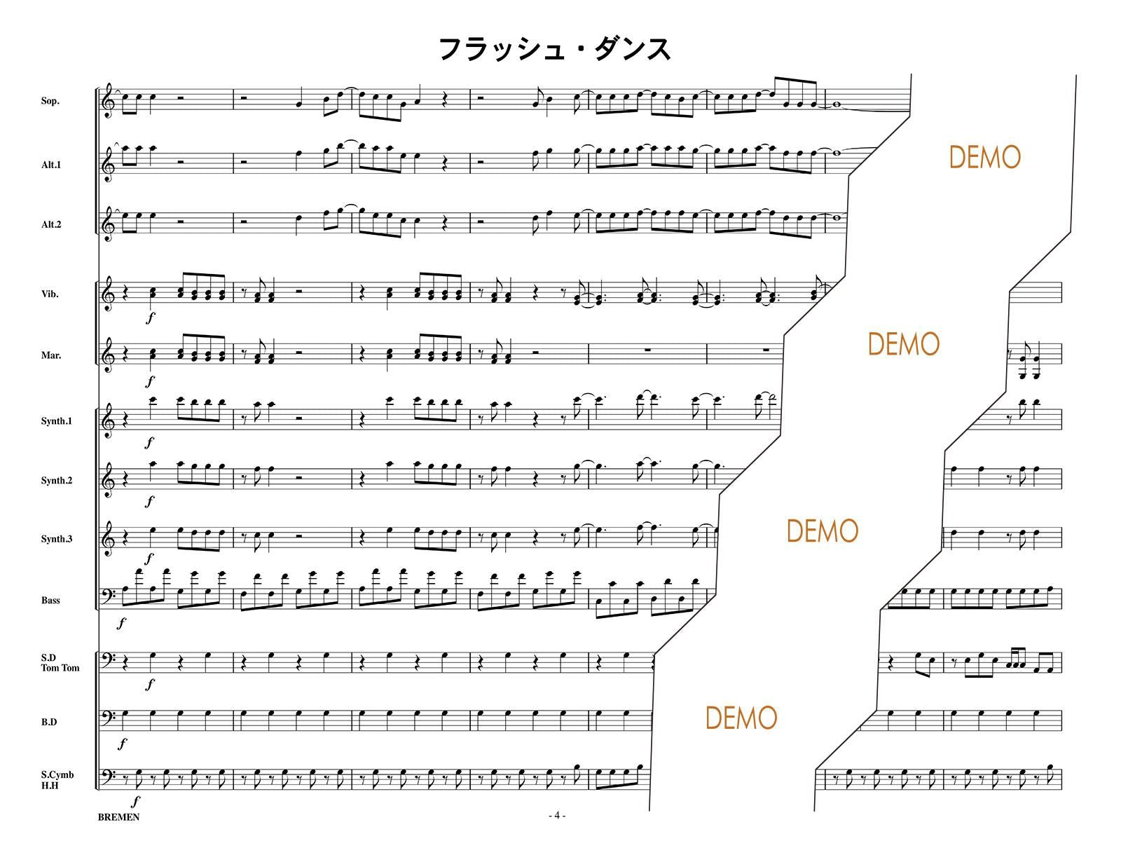 主な使用楽器:鍵盤ハーモニカ、グロッケン(鉄琴)、ビブラフォーン(鉄琴)、マリンバ(木琴)、シンセサイザー(電子オルガン)、ベース(低音楽器)、スネアドラム(小太鼓)、バスドラム(大太鼓)、パーカッション、ティンパニー等