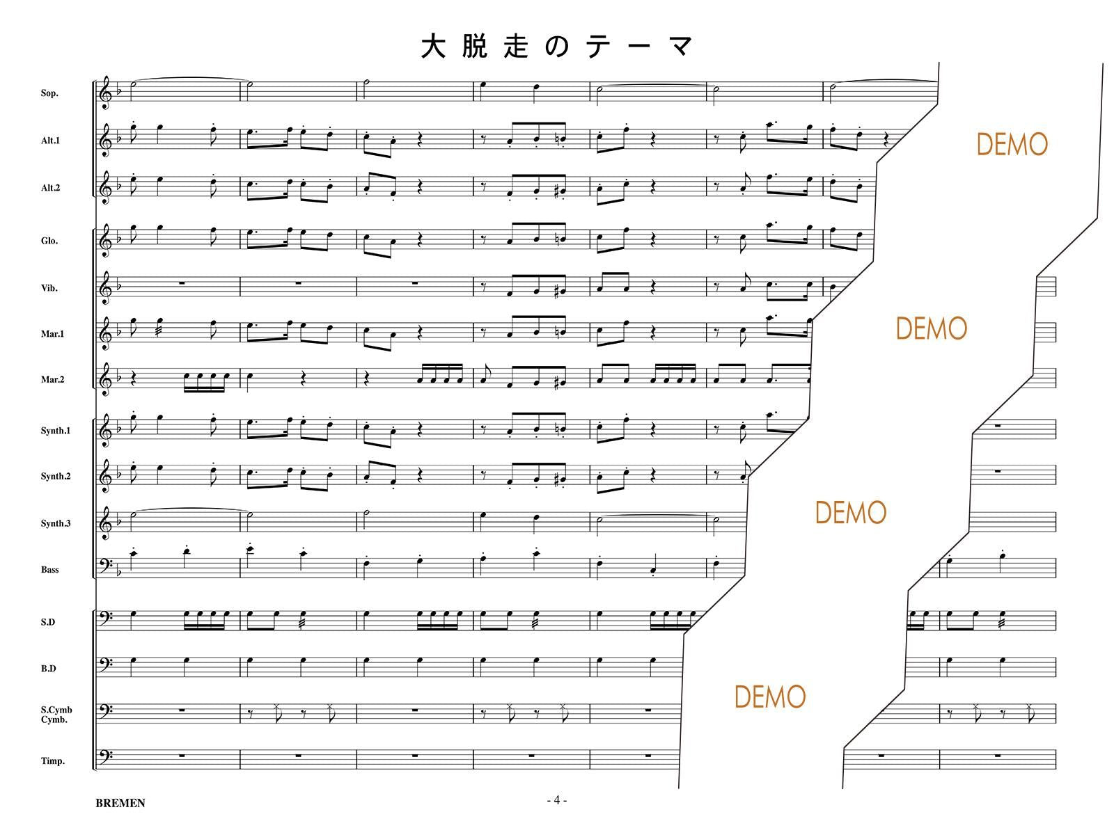 主な使用楽器:鍵盤ハーモニカ、グロッケン(鉄琴)、ビブラフォーン(鉄琴)、マリンバ(木琴)、シンセサイザー(電子オルガン)、ベース(低音楽器)、スネアドラム(小太鼓)、バスドラム(大太鼓)、パーカッション、ティンパニー等