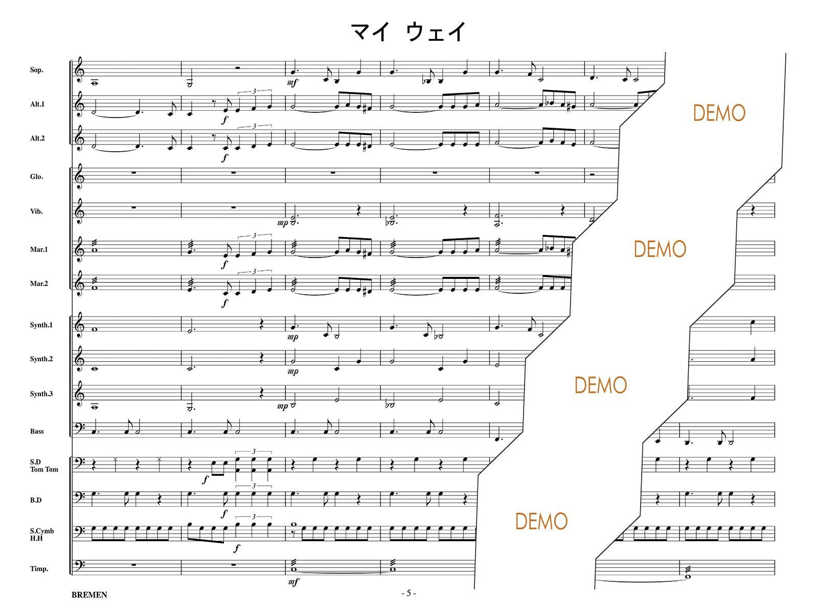 主な使用楽器:鍵盤ハーモニカ、グロッケン(鉄琴)、ビブラフォーン(鉄琴)、マリンバ(木琴)、シンセサイザー(電子オルガン)、ベース(低音楽器)、スネアドラム(小太鼓)、バスドラム(大太鼓)、パーカッション、ティンパニー等