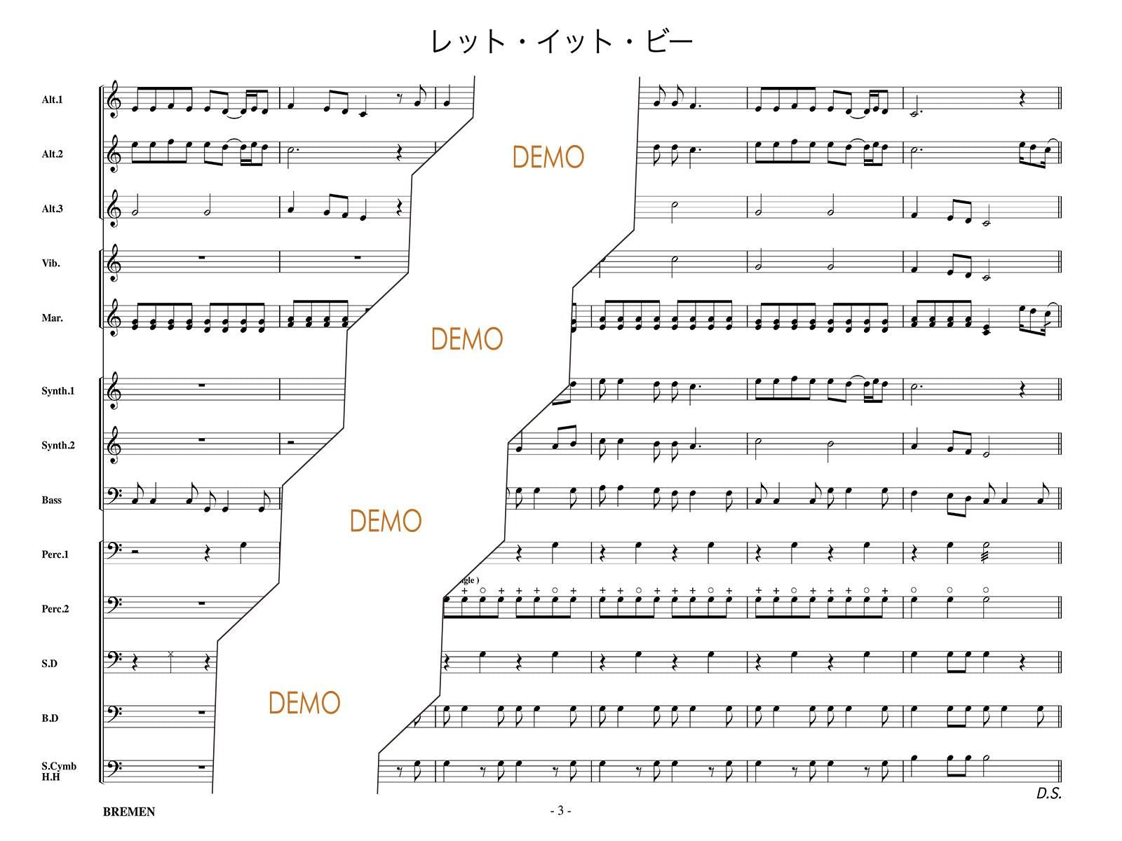 主な使用楽器:鍵盤ハーモニカ、グロッケン(鉄琴)、ビブラフォーン(鉄琴)、マリンバ(木琴)、シンセサイザー(電子オルガン)、ベース(低音楽器)、スネアドラム(小太鼓)、バスドラム(大太鼓)、パーカッション、ティンパニー等
