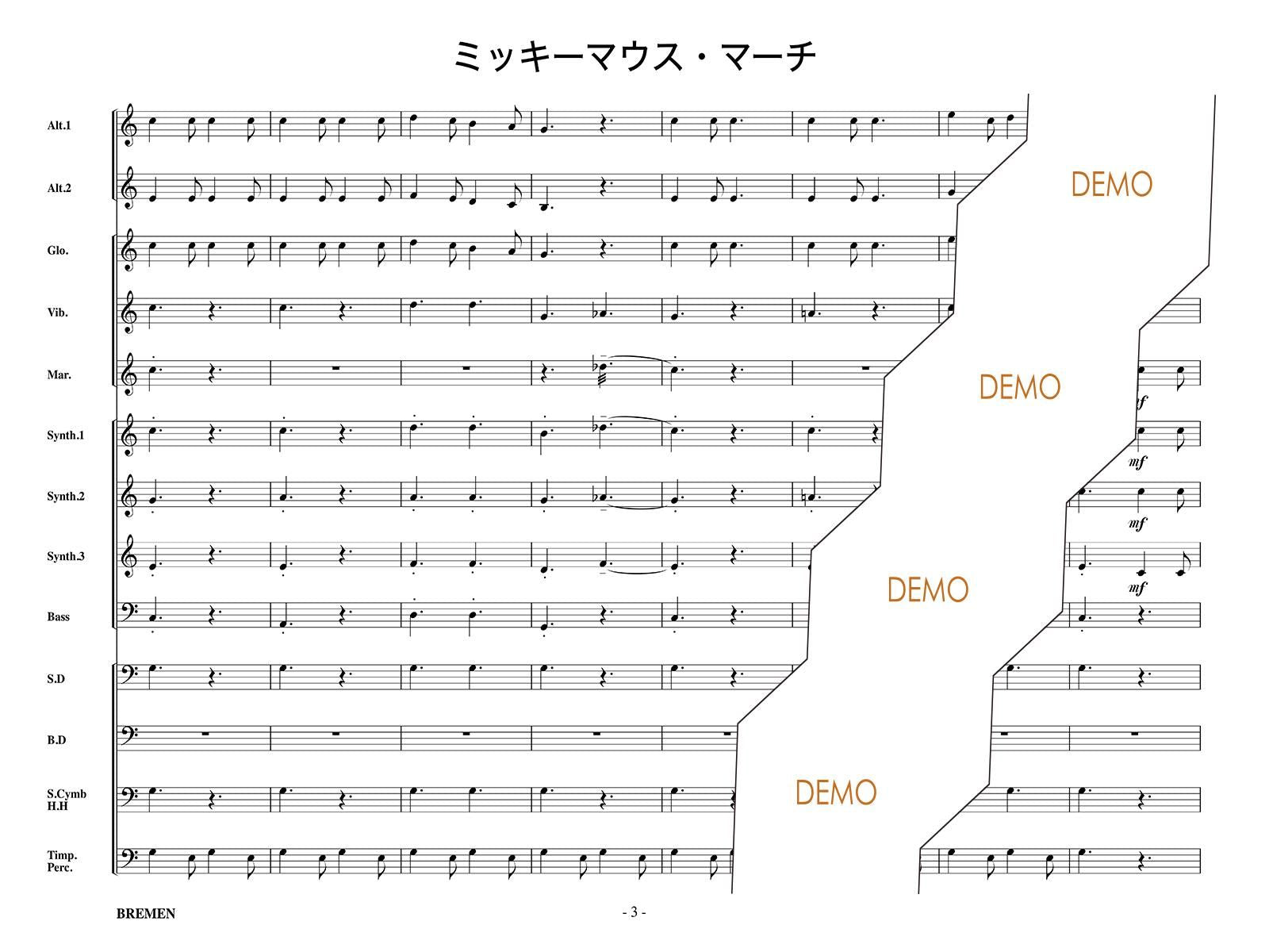 主な使用楽器:鍵盤ハーモニカ、グロッケン(鉄琴)、ビブラフォーン(鉄琴)、マリンバ(木琴)、シンセサイザー(電子オルガン)、ベース(低音楽器)、スネアドラム(小太鼓)、バスドラム(大太鼓)、パーカッション、ティンパニー等