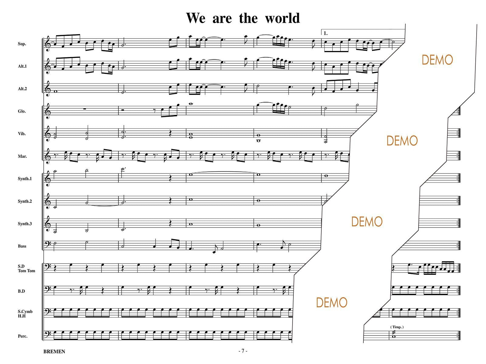主な使用楽器:鍵盤ハーモニカ、グロッケン(鉄琴)、ビブラフォーン(鉄琴)、マリンバ(木琴)、シンセサイザー(電子オルガン)、ベース(低音楽器)、スネアドラム(小太鼓)、バスドラム(大太鼓)、パーカッション、ティンパニー等