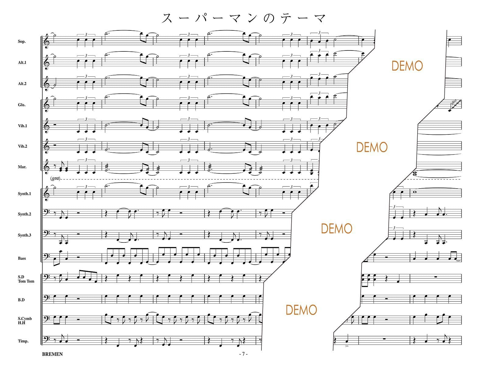 主な使用楽器:鍵盤ハーモニカ、グロッケン(鉄琴)、ビブラフォーン(鉄琴)、マリンバ(木琴)、シンセサイザー(電子オルガン)、ベース(低音楽器)、スネアドラム(小太鼓)、バスドラム(大太鼓)、パーカッション、ティンパニー等