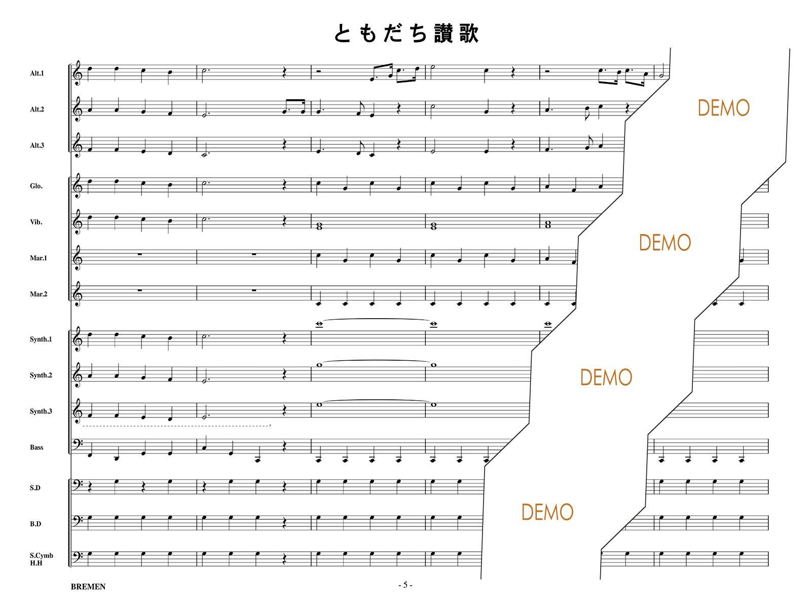 主な使用楽器:鍵盤ハーモニカ、グロッケン(鉄琴)、ビブラフォーン(鉄琴)、マリンバ(木琴)、シンセサイザー(電子オルガン)、ベース(低音楽器)、スネアドラム(小太鼓)、バスドラム(大太鼓)、パーカッション、ティンパニー等