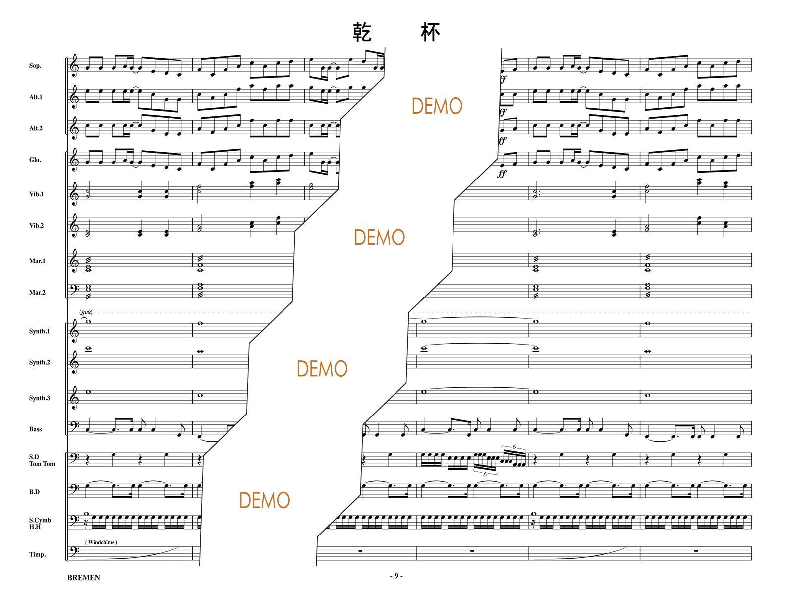 主な使用楽器:鍵盤ハーモニカ、グロッケン(鉄琴)、ビブラフォーン(鉄琴)、マリンバ(木琴)、シンセサイザー(電子オルガン)、ベース(低音楽器)、スネアドラム(小太鼓)、バスドラム(大太鼓)、パーカッション、ティンパニー等