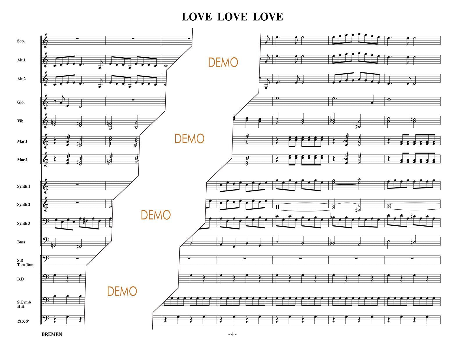 主な使用楽器:鍵盤ハーモニカ、グロッケン(鉄琴)、ビブラフォーン(鉄琴)、マリンバ(木琴)、シンセサイザー(電子オルガン)、ベース(低音楽器)、スネアドラム(小太鼓)、バスドラム(大太鼓)、パーカッション、ティンパニー等
