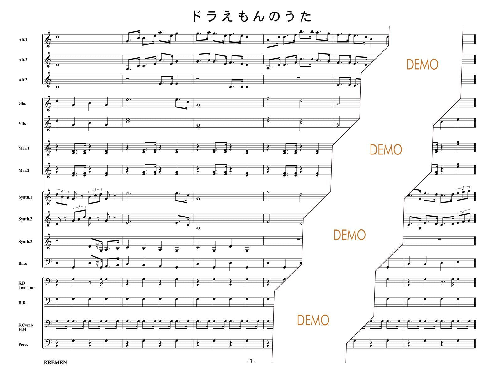 主な使用楽器:鍵盤ハーモニカ、グロッケン(鉄琴)、ビブラフォーン(鉄琴)、マリンバ(木琴)、シンセサイザー(電子オルガン)、ベース(低音楽器)、スネアドラム(小太鼓)、バスドラム(大太鼓)、パーカッション、ティンパニー等