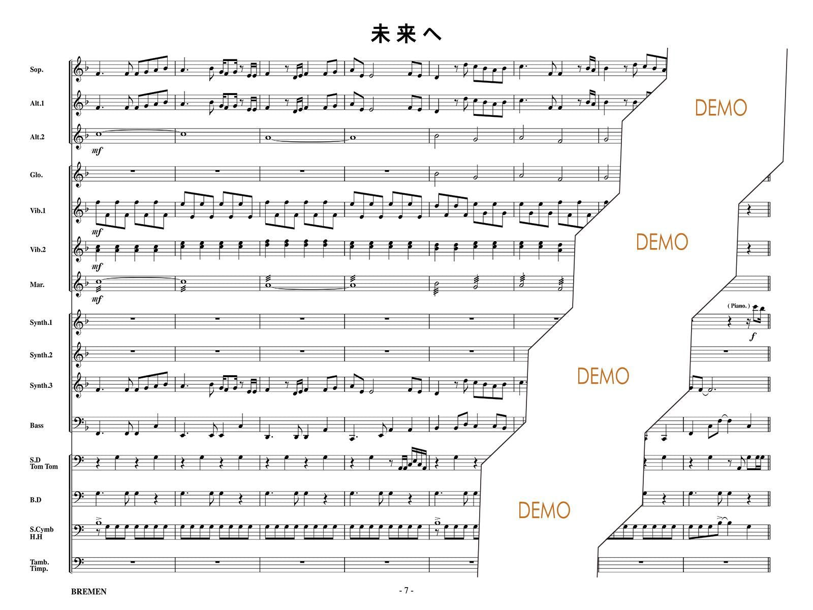 主な使用楽器:鍵盤ハーモニカ、グロッケン(鉄琴)、ビブラフォーン(鉄琴)、マリンバ(木琴)、シンセサイザー(電子オルガン)、ベース(低音楽器)、スネアドラム(小太鼓)、バスドラム(大太鼓)、パーカッション、ティンパニー等
