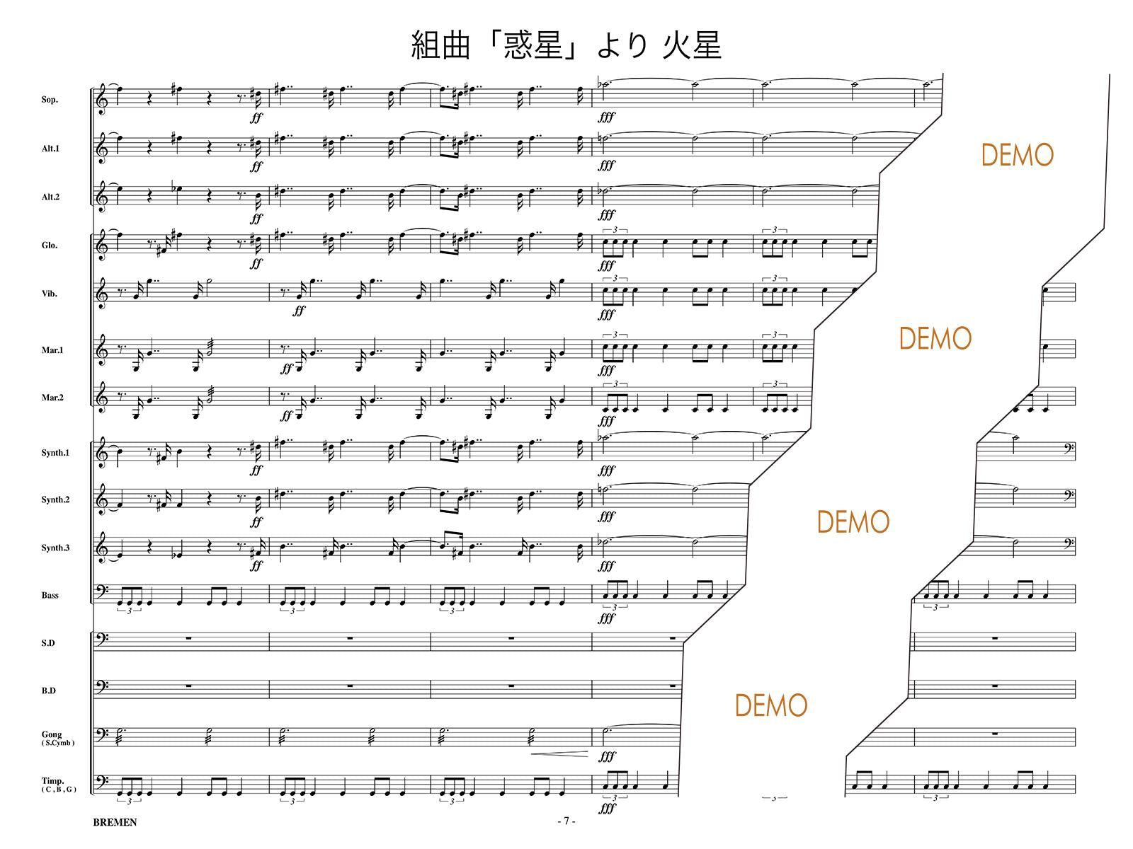 主な使用楽器:鍵盤ハーモニカ、グロッケン(鉄琴)、ビブラフォーン(鉄琴)、マリンバ(木琴)、シンセサイザー(電子オルガン)、ベース(低音楽器)、スネアドラム(小太鼓)、バスドラム(大太鼓)、パーカッション、ティンパニー等