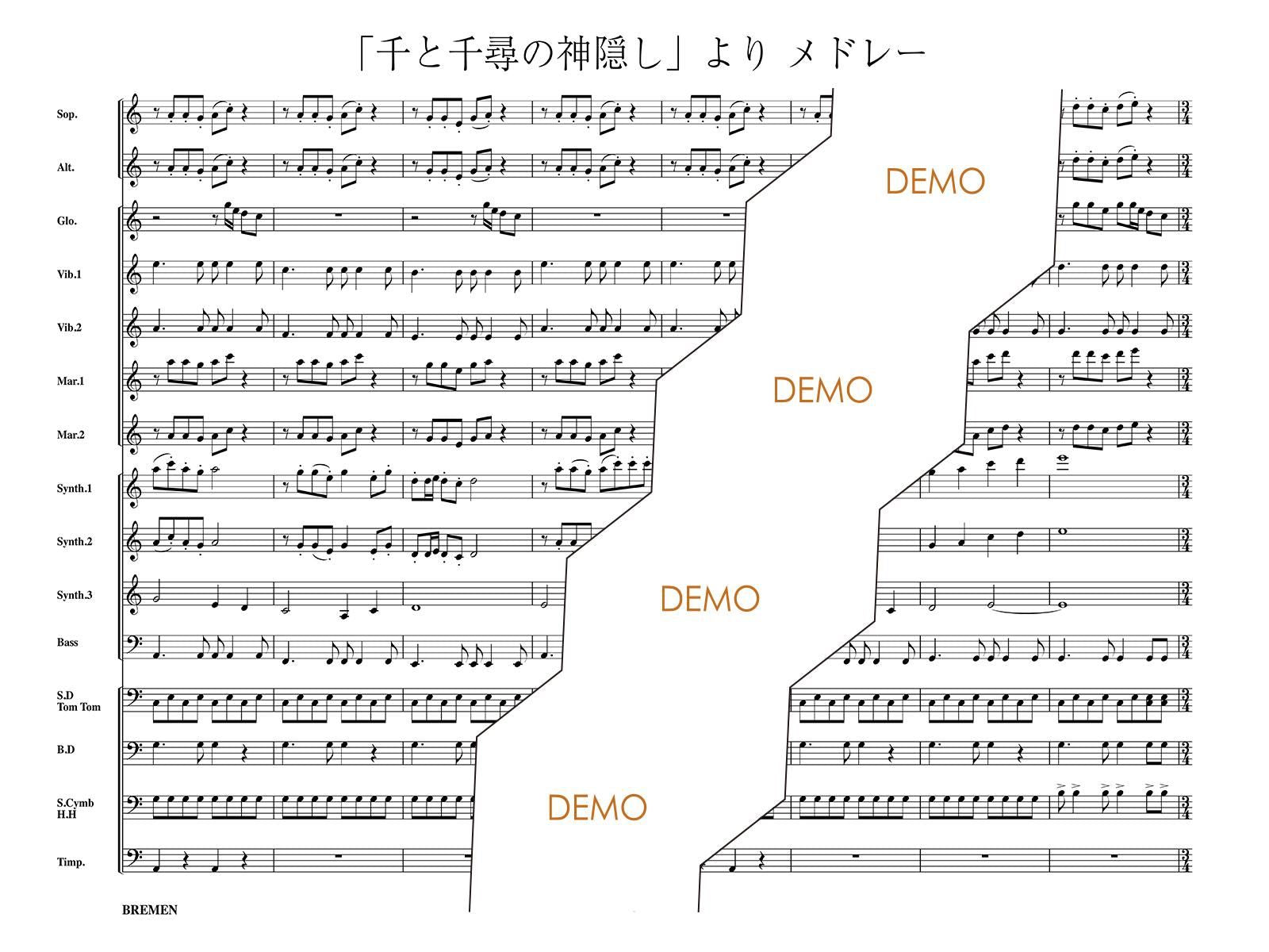 主な使用楽器:鍵盤ハーモニカ、グロッケン(鉄琴)、ビブラフォーン(鉄琴)、マリンバ(木琴)、シンセサイザー(電子オルガン)、ベース(低音楽器)、スネアドラム(小太鼓)、バスドラム(大太鼓)、パーカッション、ティンパニー等