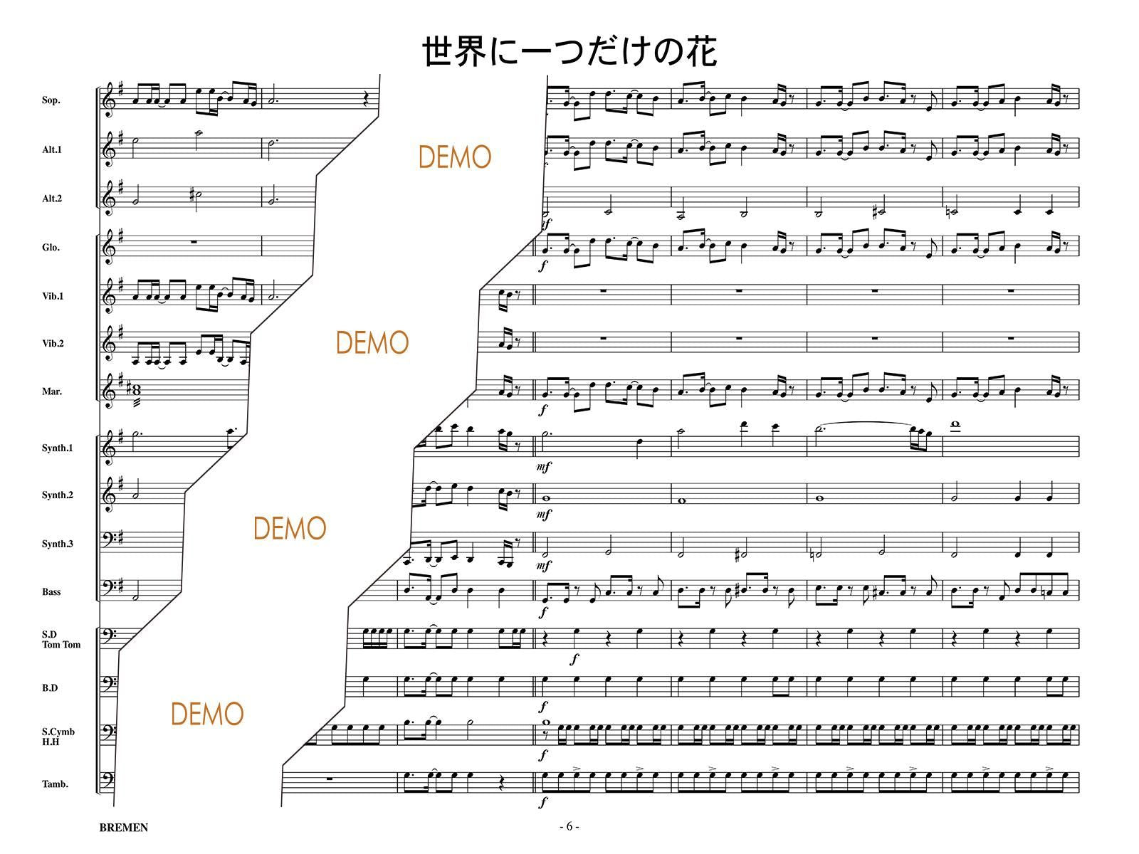 主な使用楽器:鍵盤ハーモニカ、グロッケン(鉄琴)、ビブラフォーン(鉄琴)、マリンバ(木琴)、シンセサイザー(電子オルガン)、ベース(低音楽器)、スネアドラム(小太鼓)、バスドラム(大太鼓)、パーカッション、ティンパニー等