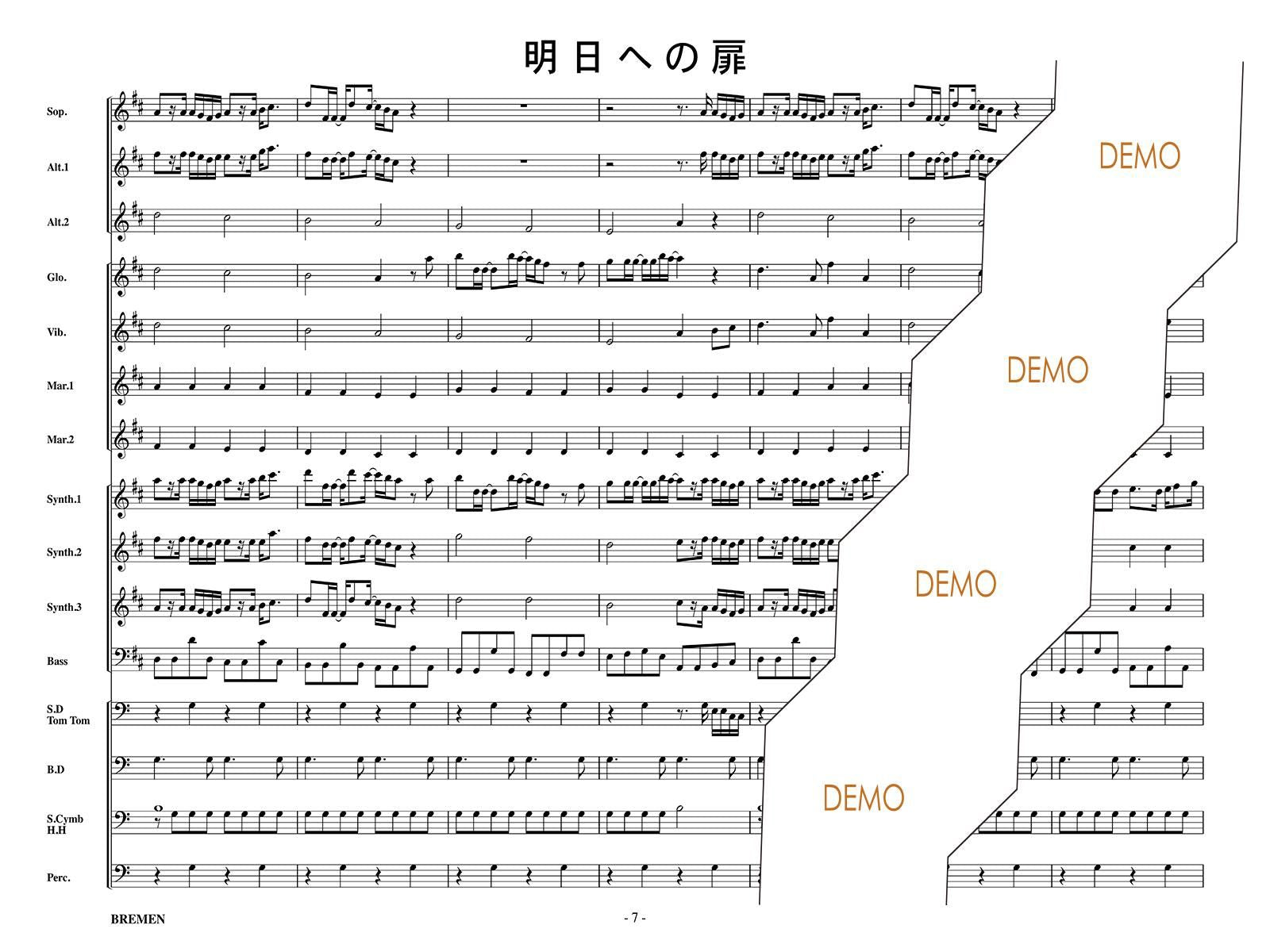 主な使用楽器:鍵盤ハーモニカ、グロッケン(鉄琴)、ビブラフォーン(鉄琴)、マリンバ(木琴)、シンセサイザー(電子オルガン)、ベース(低音楽器)、スネアドラム(小太鼓)、バスドラム(大太鼓)、パーカッション、ティンパニー等