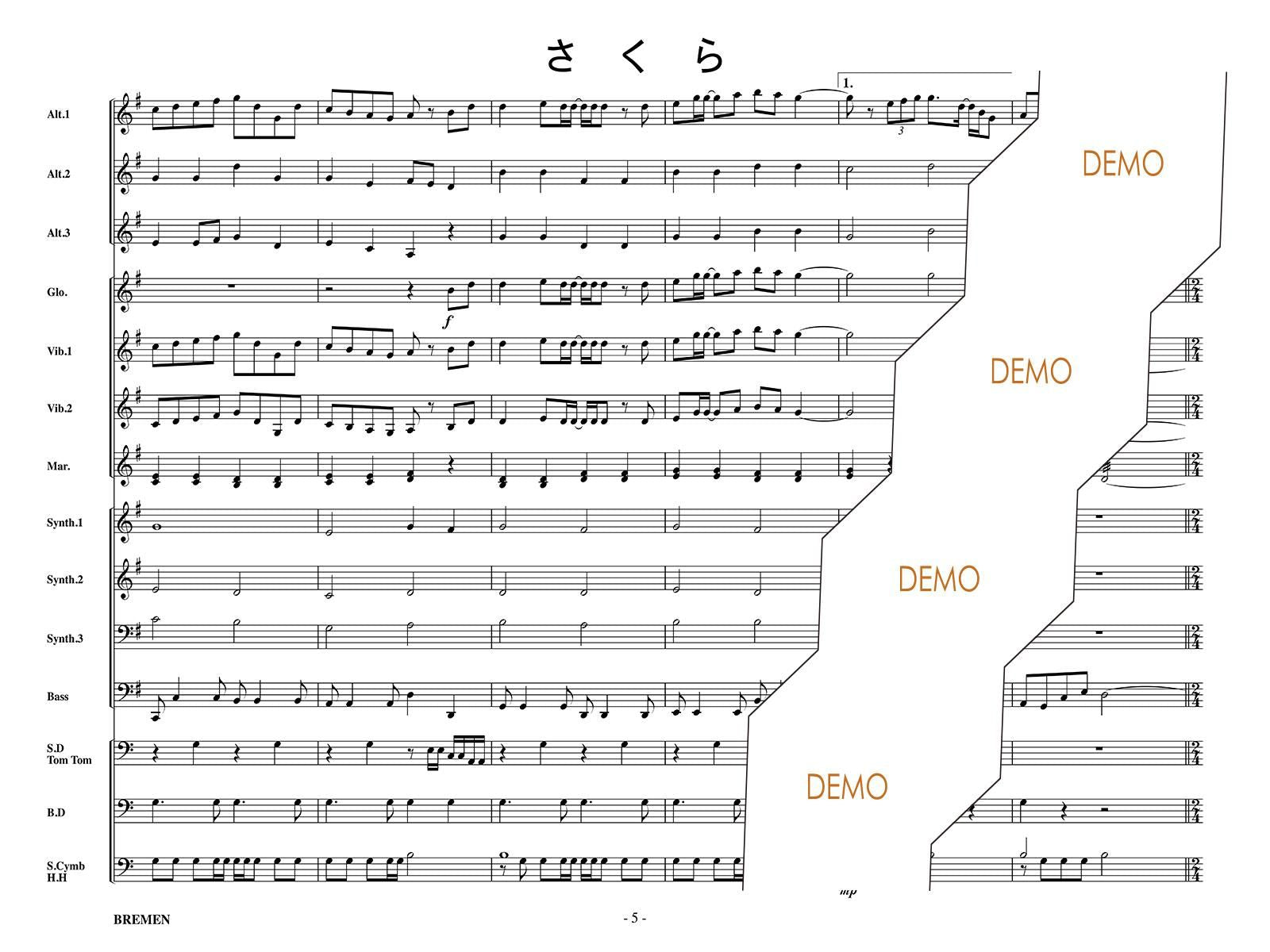 主な使用楽器:鍵盤ハーモニカ、グロッケン(鉄琴)、ビブラフォーン(鉄琴)、マリンバ(木琴)、シンセサイザー(電子オルガン)、ベース(低音楽器)、スネアドラム(小太鼓)、バスドラム(大太鼓)、パーカッション、ティンパニー等