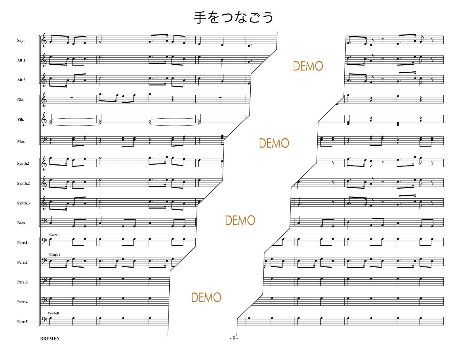 主な使用楽器:鍵盤ハーモニカ、グロッケン(鉄琴)、ビブラフォーン(鉄琴)、マリンバ(木琴)、シンセサイザー(電子オルガン)、ベース(低音楽器)、スネアドラム(小太鼓)、バスドラム(大太鼓)、パーカッション、ティンパニー等