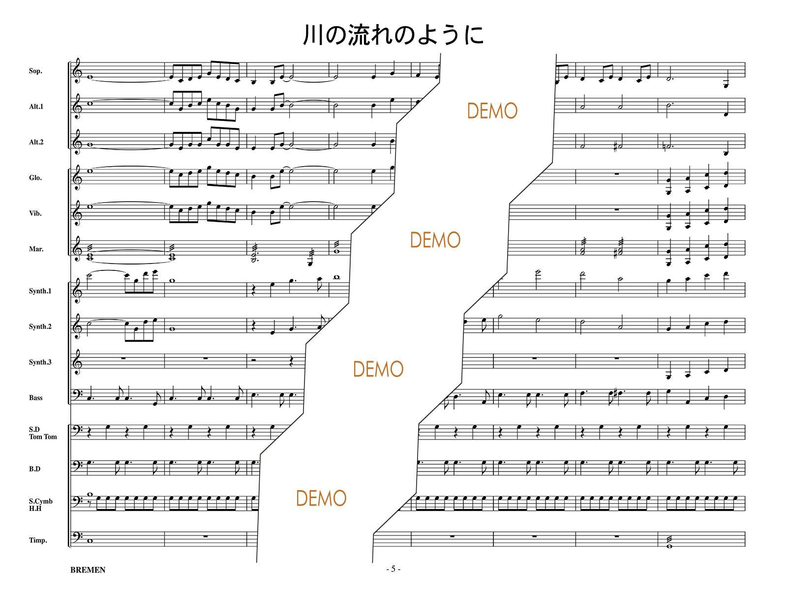 主な使用楽器:鍵盤ハーモニカ、グロッケン(鉄琴)、ビブラフォーン(鉄琴)、マリンバ(木琴)、シンセサイザー(電子オルガン)、ベース(低音楽器)、スネアドラム(小太鼓)、バスドラム(大太鼓)、パーカッション、ティンパニー等