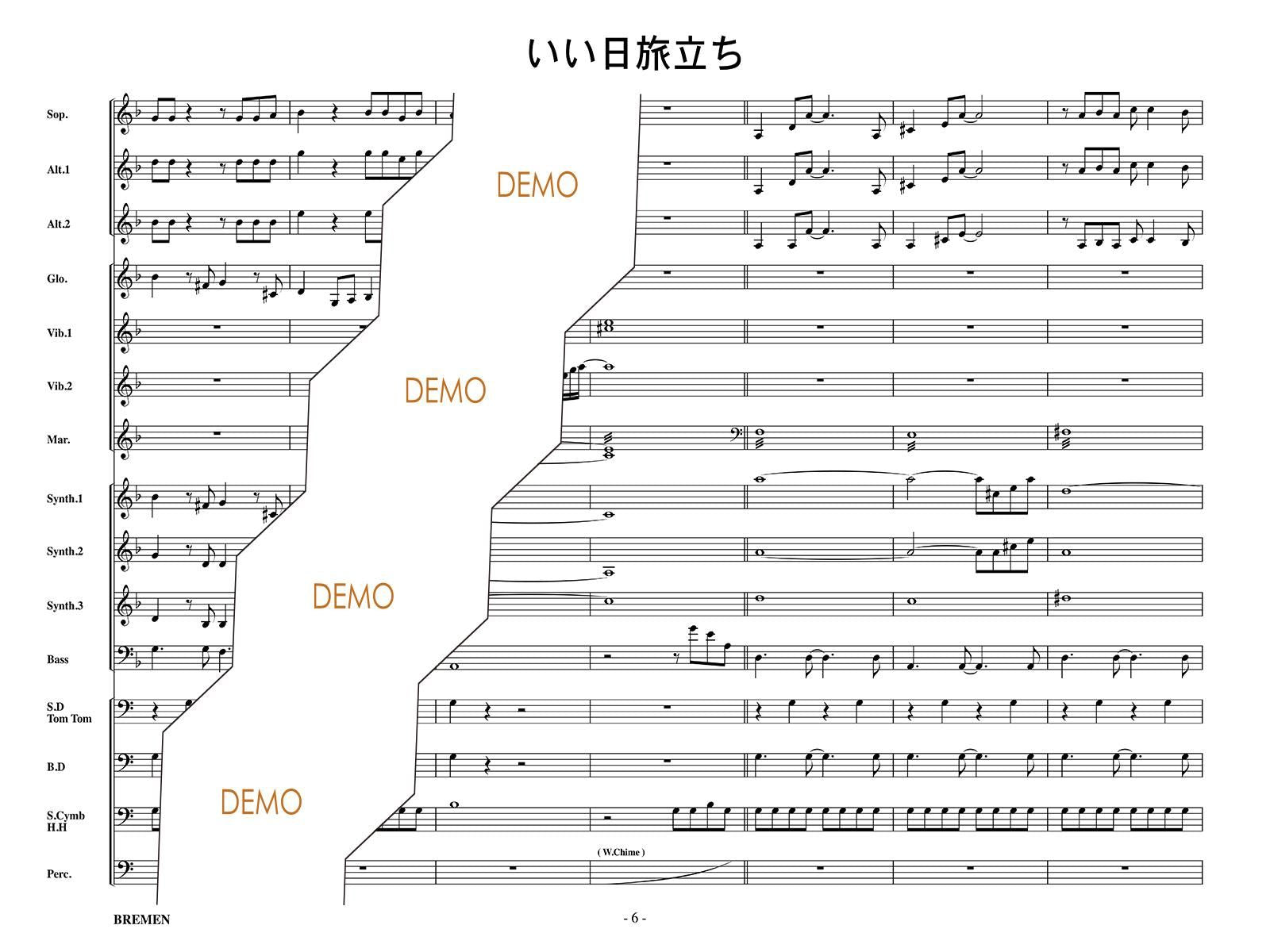 主な使用楽器:鍵盤ハーモニカ、グロッケン(鉄琴)、ビブラフォーン(鉄琴)、マリンバ(木琴)、シンセサイザー(電子オルガン)、ベース(低音楽器)、スネアドラム(小太鼓)、バスドラム(大太鼓)、パーカッション、ティンパニー等