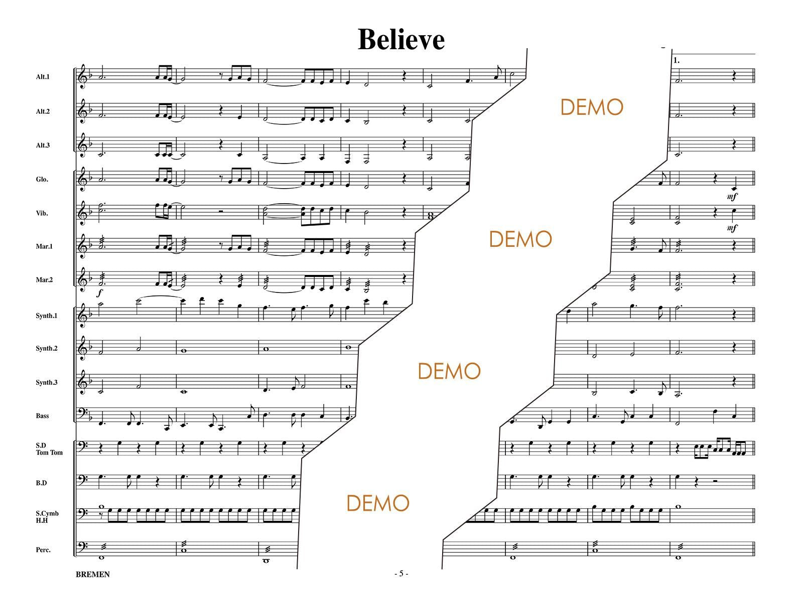 主な使用楽器:鍵盤ハーモニカ、グロッケン(鉄琴)、ビブラフォーン(鉄琴)、マリンバ(木琴)、シンセサイザー(電子オルガン)、ベース(低音楽器)、スネアドラム(小太鼓)、バスドラム(大太鼓)、パーカッション、ティンパニー等