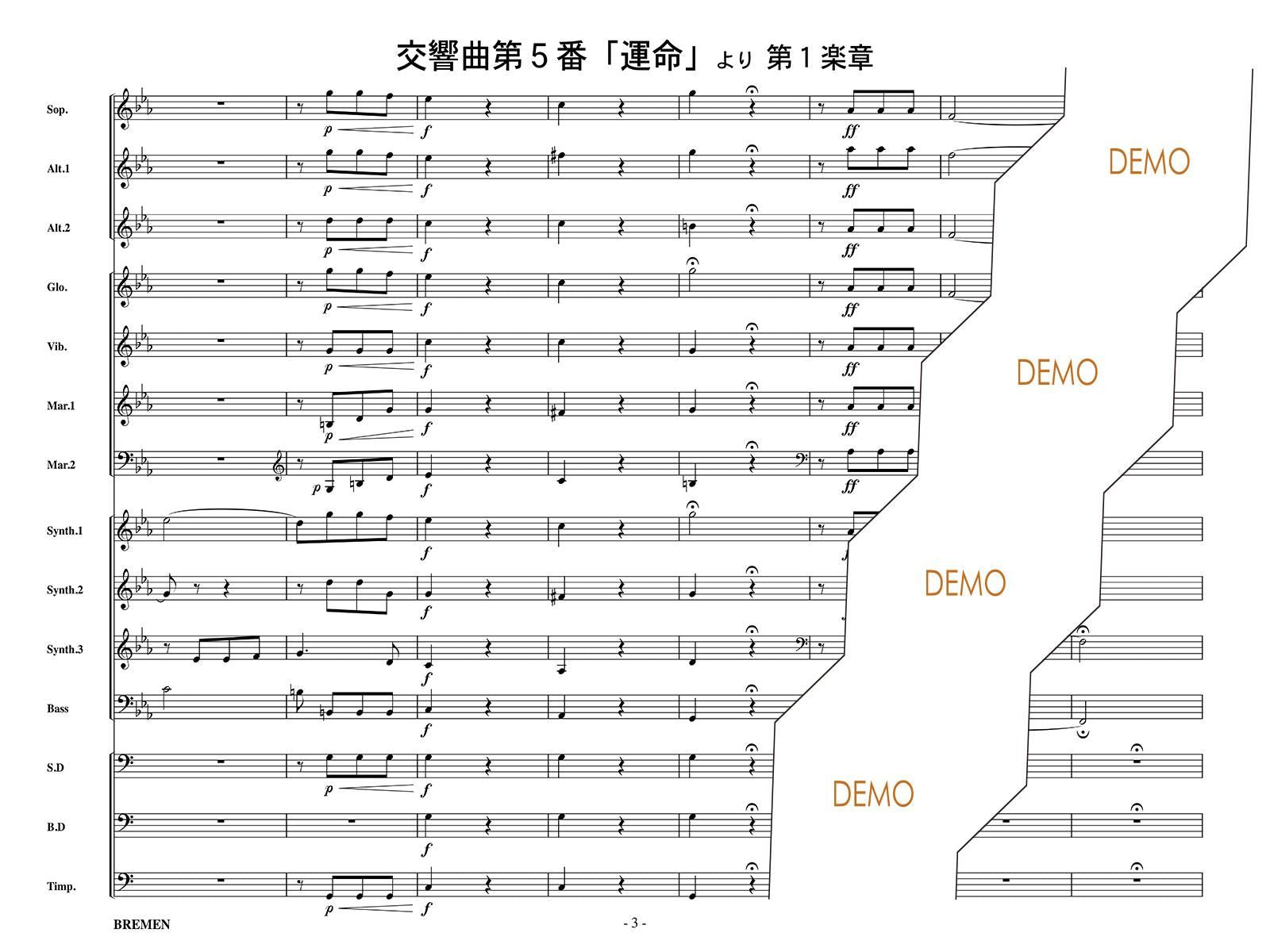 主な使用楽器:鍵盤ハーモニカ、グロッケン(鉄琴)、ビブラフォーン(鉄琴)、マリンバ(木琴)、シンセサイザー(電子オルガン)、ベース(低音楽器)、スネアドラム(小太鼓)、バスドラム(大太鼓)、パーカッション、ティンパニー等