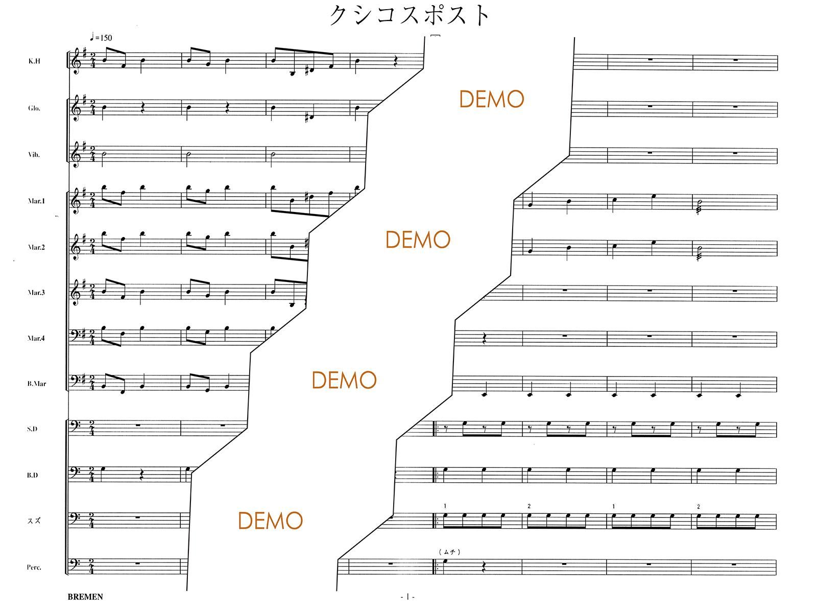 主な使用楽器:鍵盤ハーモニカ、グロッケン(鉄琴)、ビブラフォーン(鉄琴)、マリンバ(木琴)、シンセサイザー(電子オルガン)、ベース(低音楽器)、スネアドラム(小太鼓)、バスドラム(大太鼓)、パーカッション、ティンパニー等