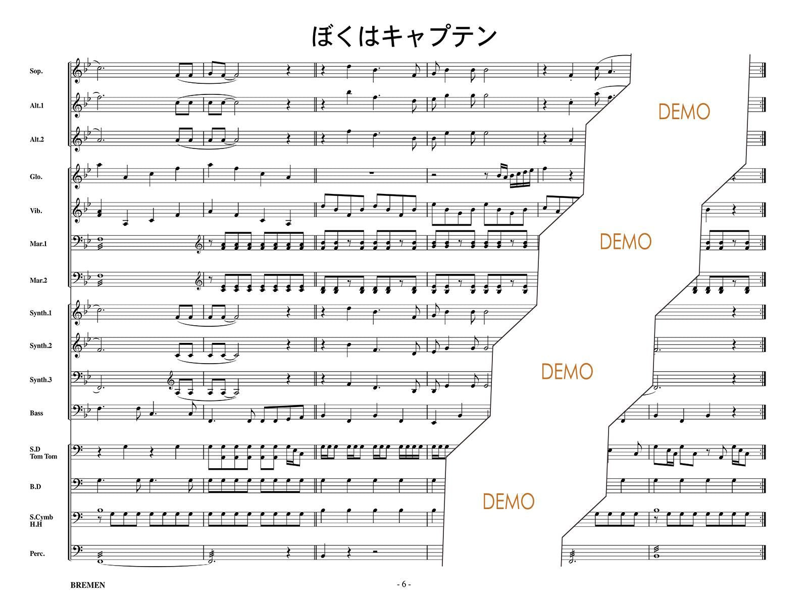 主な使用楽器:鍵盤ハーモニカ、グロッケン(鉄琴)、ビブラフォーン(鉄琴)、マリンバ(木琴)、シンセサイザー(電子オルガン)、ベース(低音楽器)、スネアドラム(小太鼓)、バスドラム(大太鼓)、パーカッション、ティンパニー等