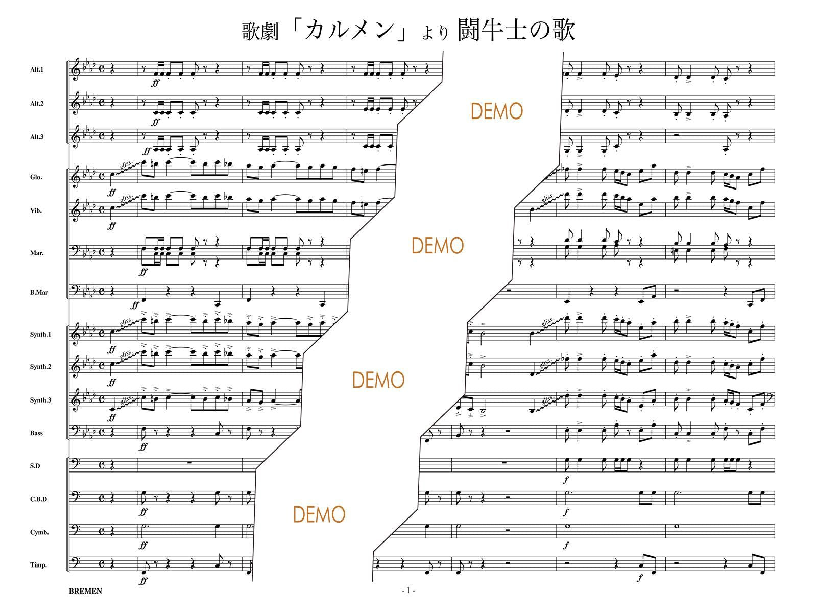 主な使用楽器:鍵盤ハーモニカ、グロッケン(鉄琴)、ビブラフォーン(鉄琴)、マリンバ(木琴)、シンセサイザー(電子オルガン)、ベース(低音楽器)、スネアドラム(小太鼓)、バスドラム(大太鼓)、パーカッション、ティンパニー等
